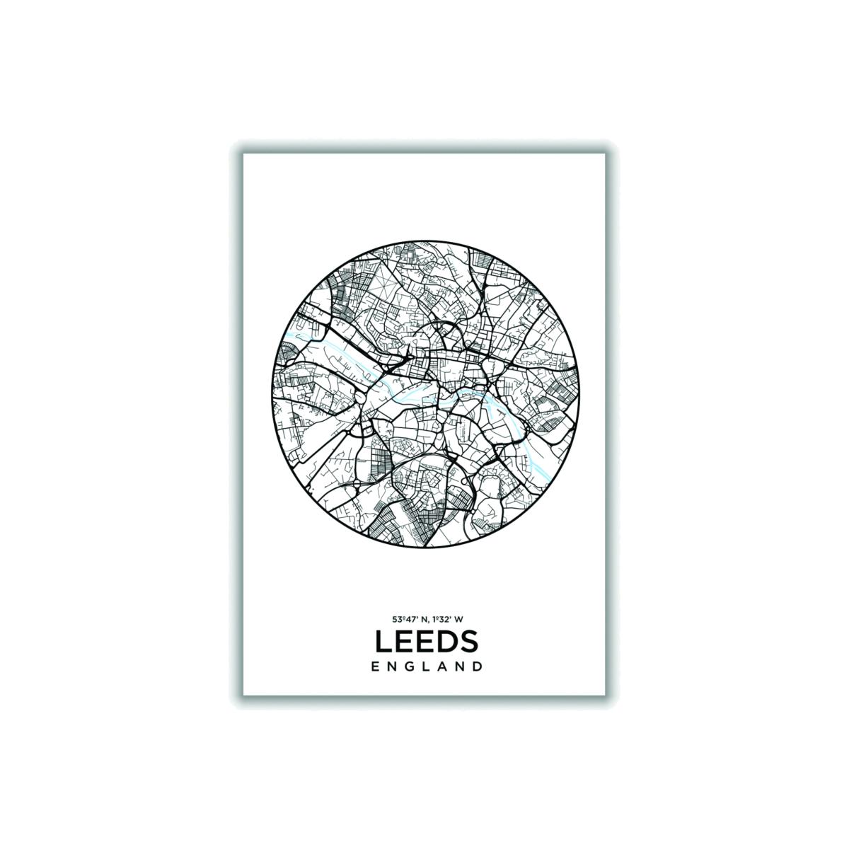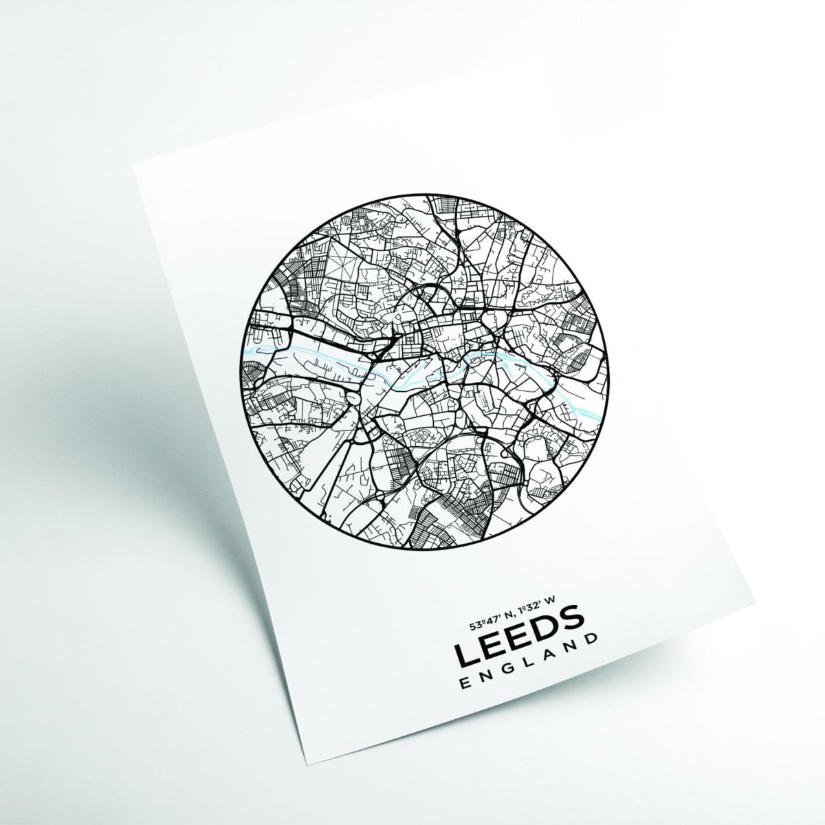 Black Map Of Leeds Medium Stanley Print House
