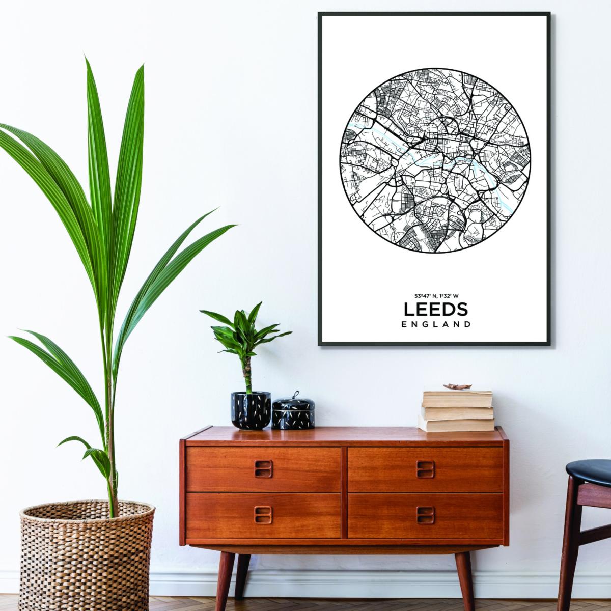 I love this map print for its sleek, minimalist appeal-perfect for adding a graphic element to modern or industrial interiors. It works well in a variety of spaces, from living rooms to home offices, where it can complement monochrome palettes or add interest to neutrals. To style it effectively, consider pairing it with simple, contemporary frames and positioning it alongside other black and white artwork or metallic accents. It’s a practical piece that offers city-chic charm without overwhelming the space, making it an easy way to personalise your home with a touch of Leeds.