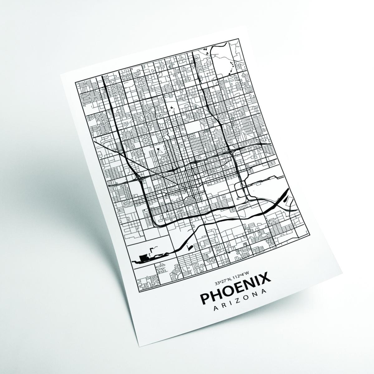 Black Map Of Phoenix A1 594 X 841Mm Stanley Print House
