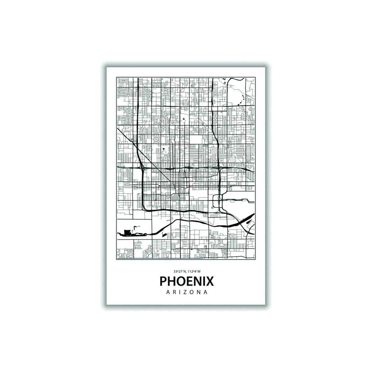 I love the black map of Phoenix because it offers a stylish and modern take on urban art. Its monochrome palette makes it highly versatile, working well in contemporary, minimalist, or industrial interiors. It can be a focal piece in a living room or office, adding visual interest without overwhelming the space. Practical styling tips include pairing it with sleek framing, adding spot lighting to enhance the details, or creating a gallery wall with other city prints for a personalised downtown vibe. It's particularly effective in spaces where you want a bit of city-edge sophistication, and its size makes it suitable for both statement walls and more subtle displays.