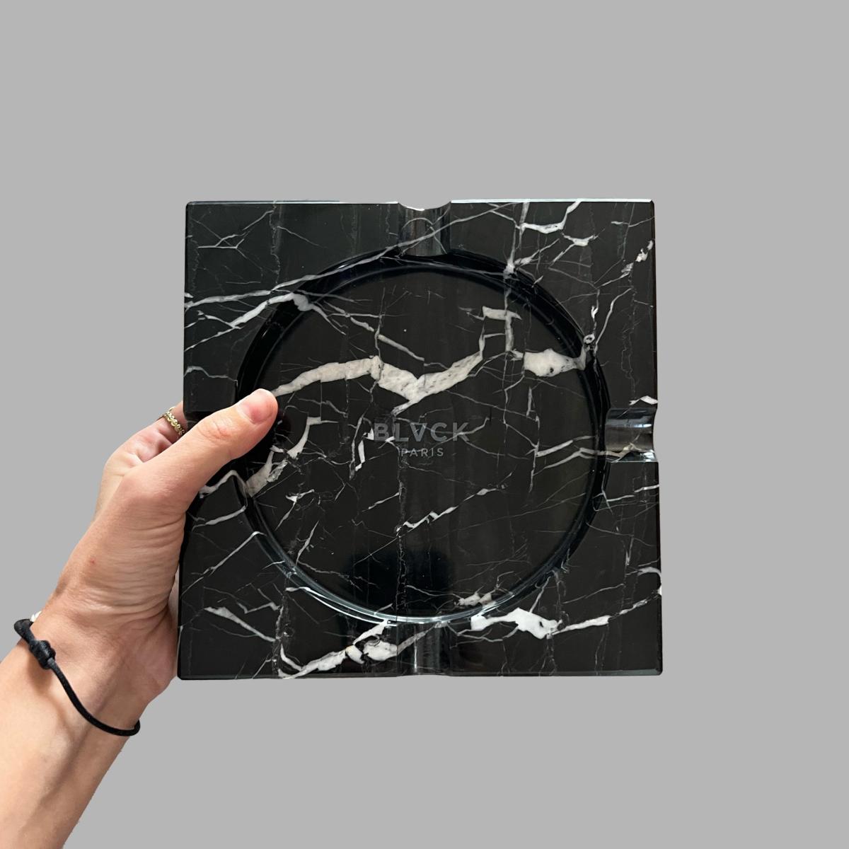 Introducing the 'Blvck Marble Ashtray', a perfect addition to your indoor and outdoor area. Made of marble with the logo in silk printing in the middle,  the marble patterns on each ashtray are natural, hence different. It won't be exactly the same as the shown images.