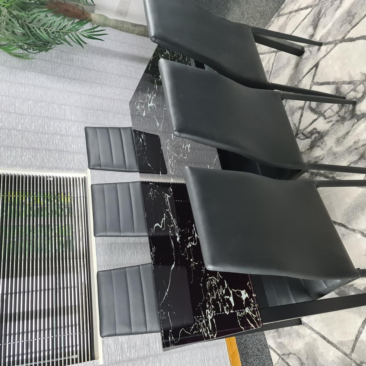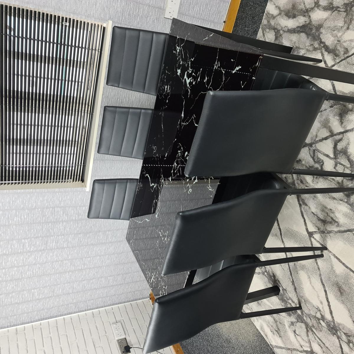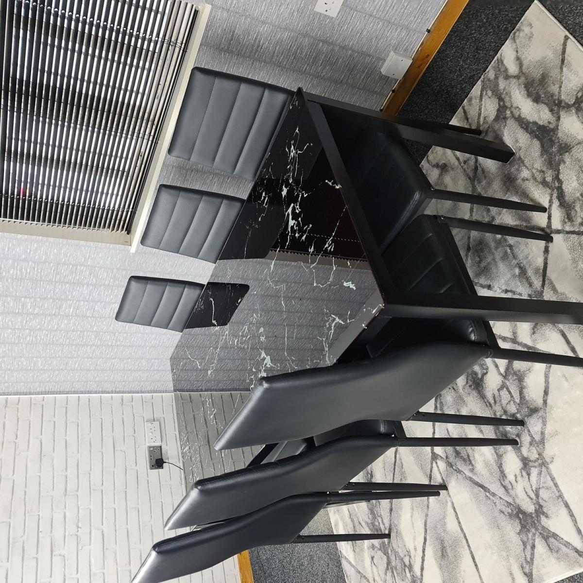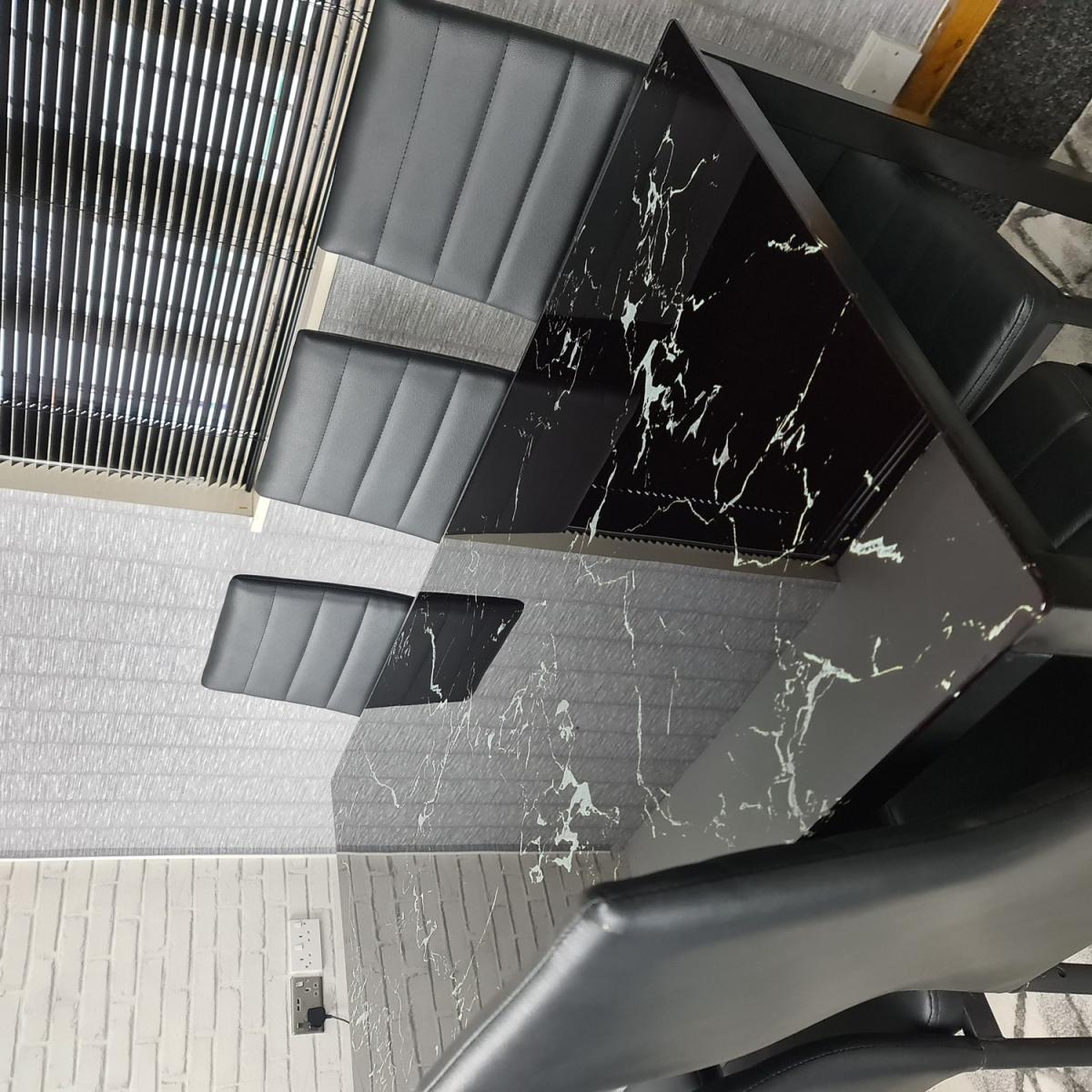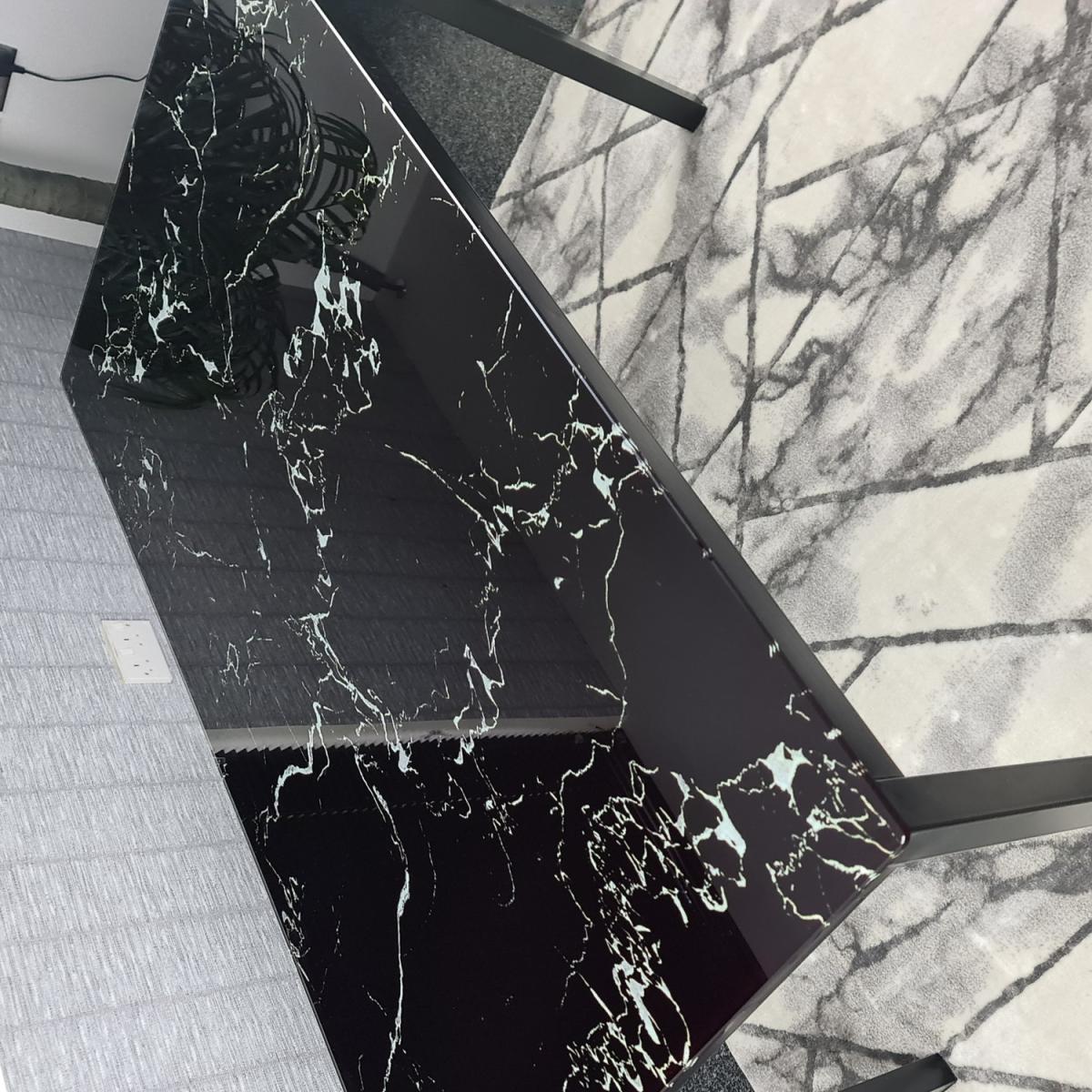 The Black Marble Dining Table will become a staple of your home and provide worry-free seating for years to come. Adding a stylish, upscale feel to any space that will complement most modern decor. Compact design fits well in small and tight spaces due to its functional yet compact design. The table has a smooth and glossy top surface that is easy to maintain and clean. Simply wipe with a damp cloth and dry. Please note that as like marble, the tabletop will vary in pattern, making your tabletop especially unique and a centrepiece to any dining room!