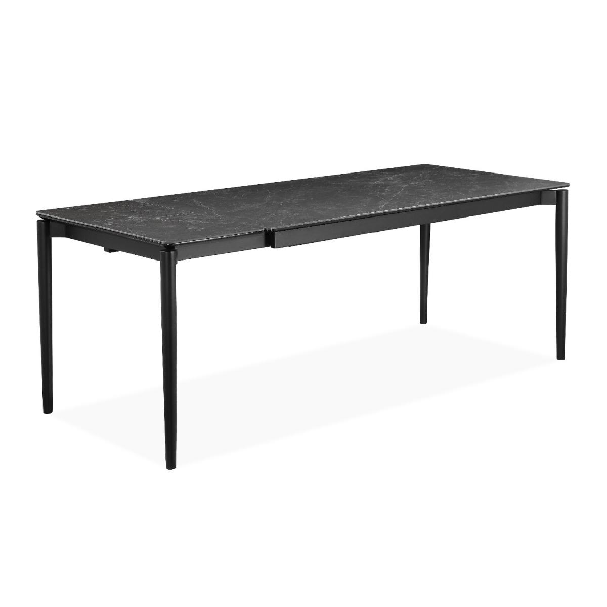 This bundle includes: 1 x Rectangle Black Marble Extendable Dining Table - Camilla 6 x Teal Velvet Dining Chairs - Logan Features we love Marble extendable dining set for 6 Two-tone teal & black are the perfect contrast Extendable top is great for communal working or dining Black marble effect table top with a tempered glass backing that's stain, scratch and heat resistant Available in a range of colours to suit your taste Need to know Dining Table Information Dimensions:H75.2 x W160 – 200 x D85cm Weight: 105kg Seats: 6 Colour: Black Finish: Ceramic top with glass backing, with marble effect design and black, powder-coated metal legs Material: Ceramic, glass and metal Assembly required: Yes Dining Chair Information Number of chairs: 6 Dimensions:H85 x W59 x D45 cm Maximum Load Weight:150kg per chair Material: Velvet & Metal Finish: Two tone - Teal & Black Assembly required: Yes
