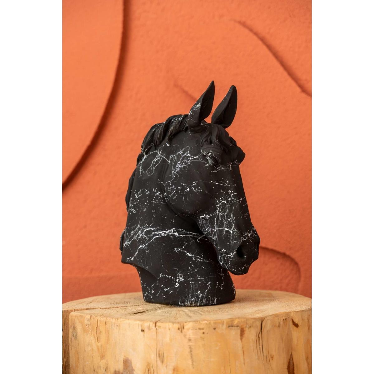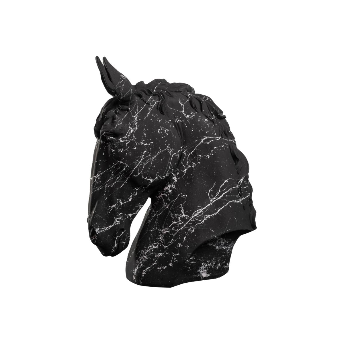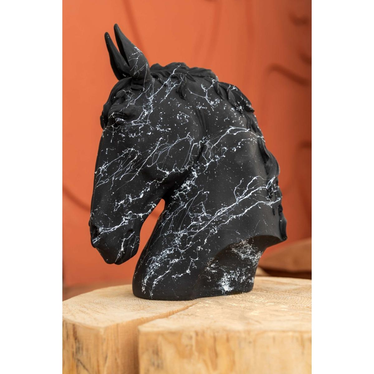 What would your ideal noble steed look like? Would they be a traditional pony or an impressive marbled horse?Add equine style to your home with this majestic horse bust. This sculpture is handcrafted to mimic a real horse, down to the smallest details. Whether you’ve grown up with horses or admire their strength, this bust will add details to your office or home. This horse bust is finished in sleek black with a white marble effect. Like a fine chess piece, this piece is made from high-quality plaster to stand the test of time with you forever.