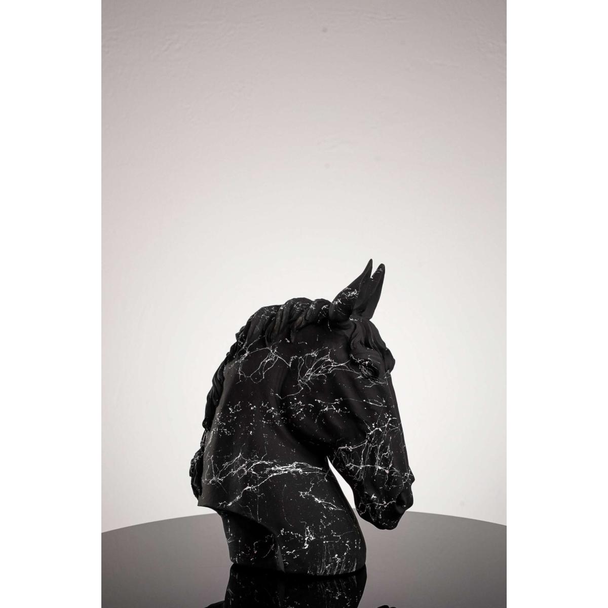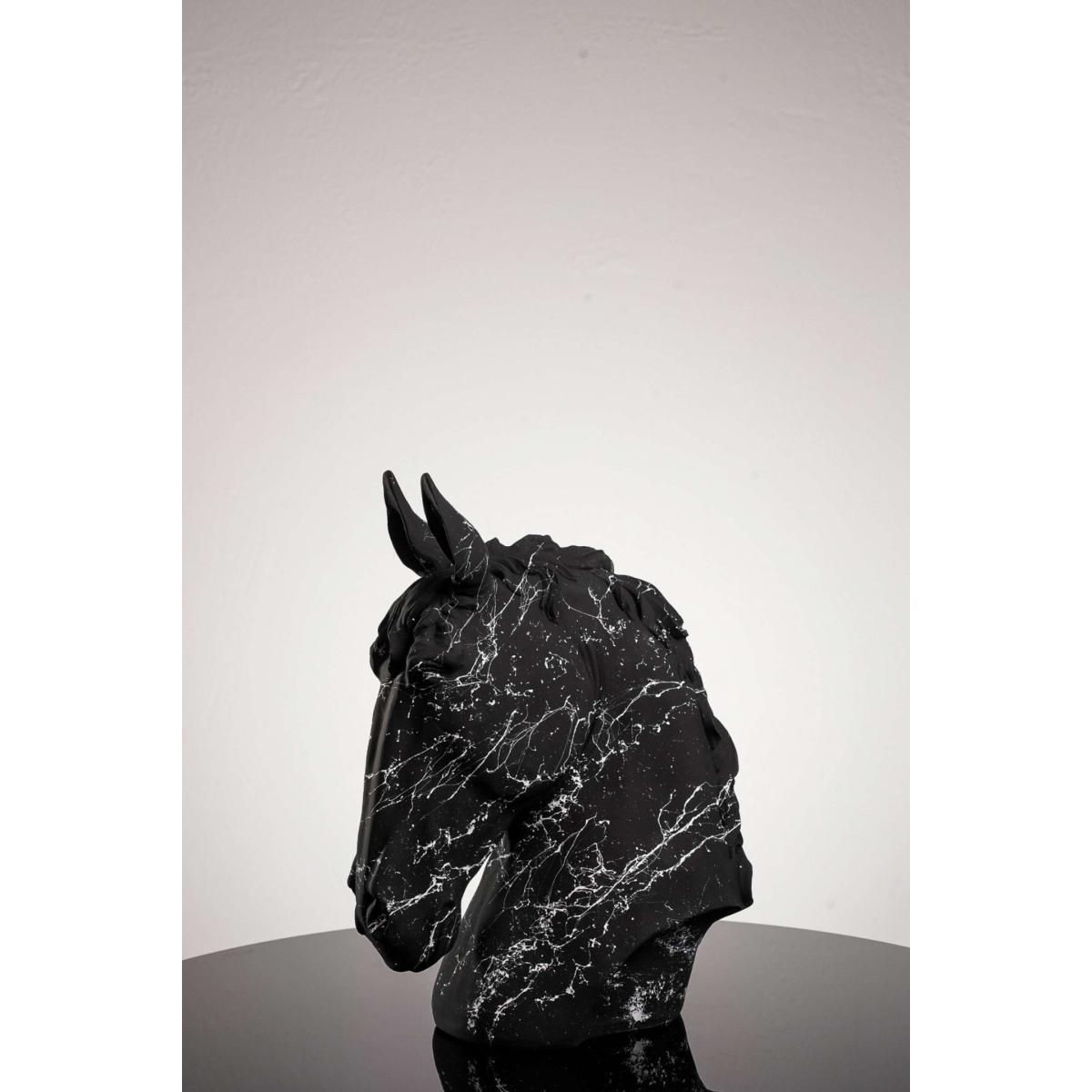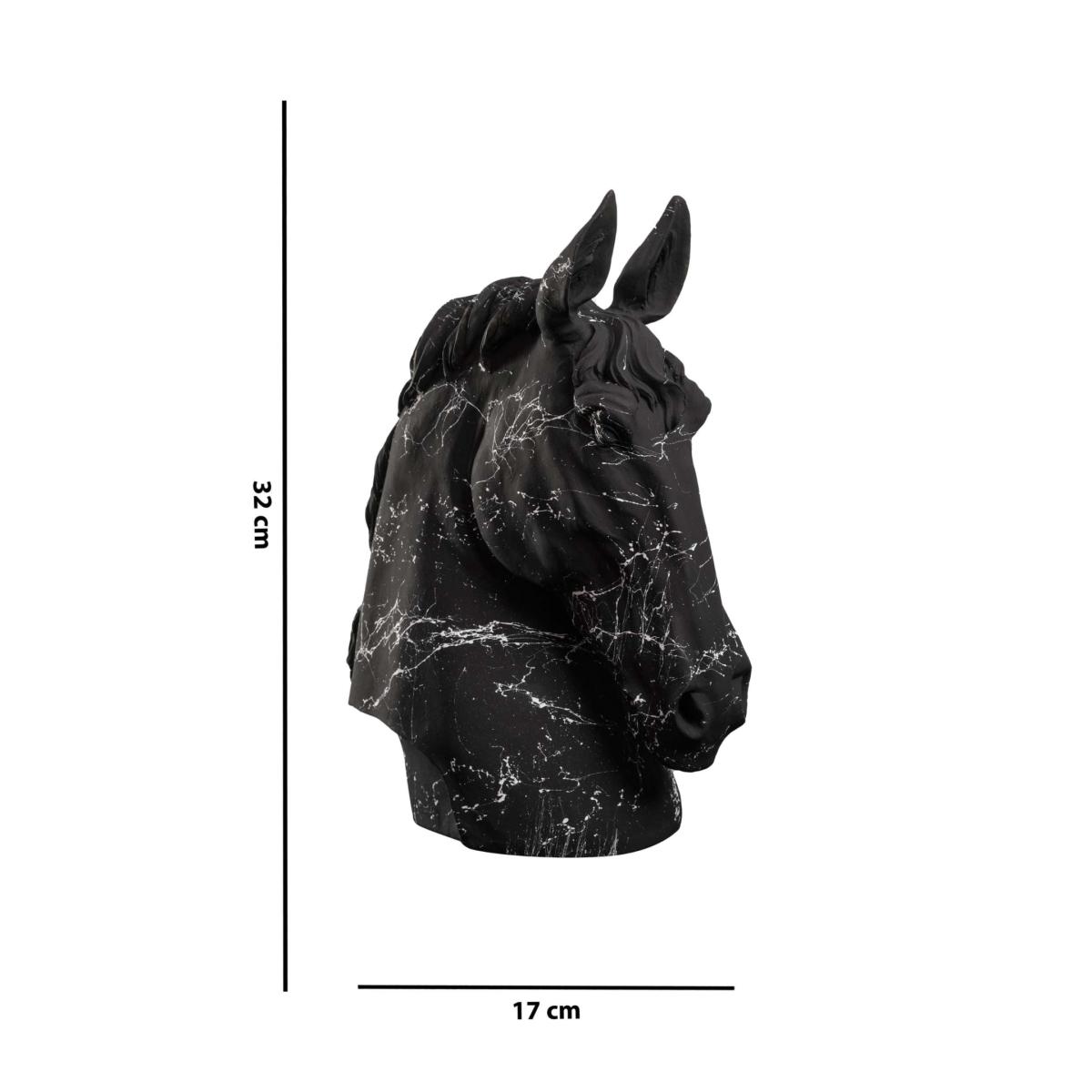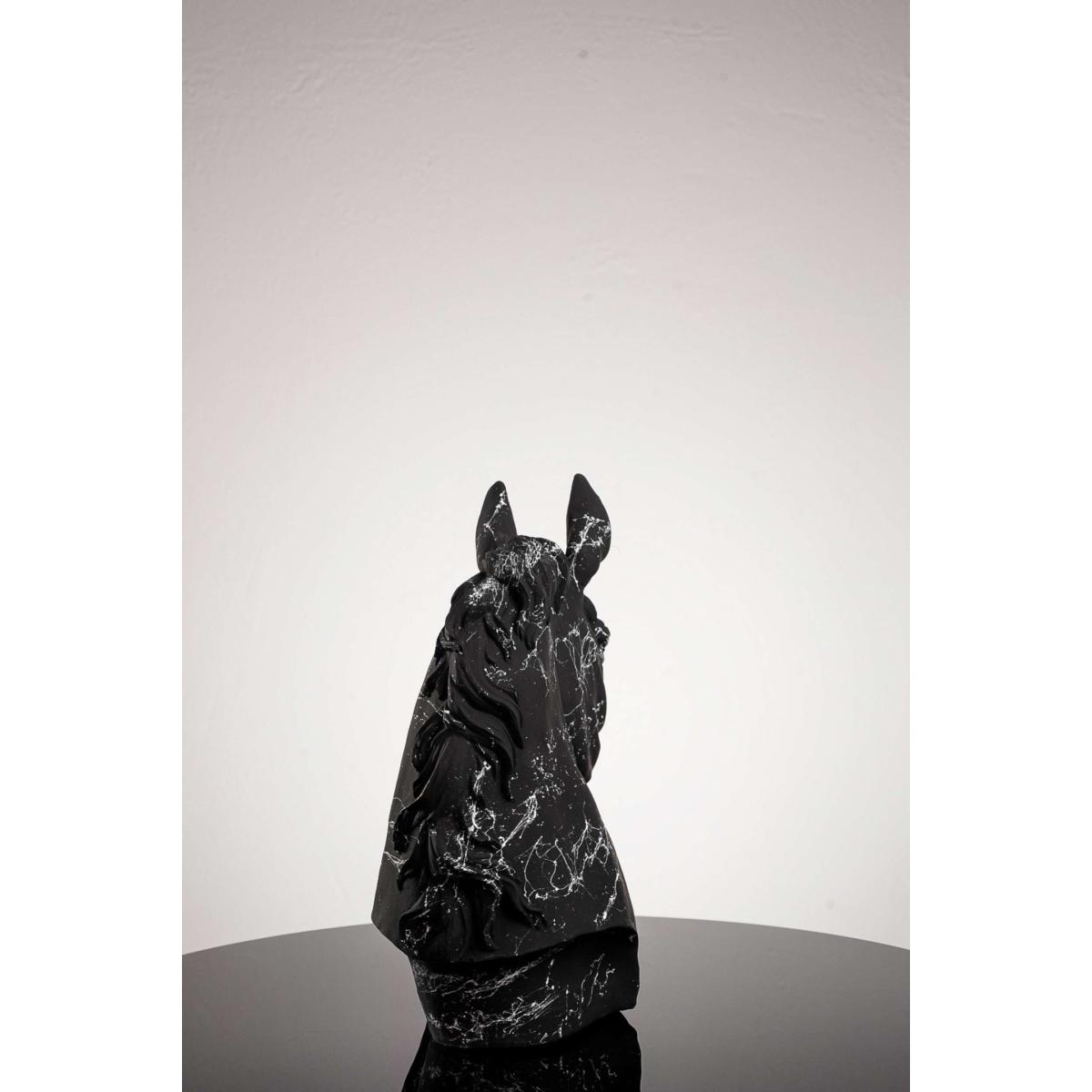 What would your ideal noble steed look like? Would they be a traditional pony or an impressive marbled horse?Add equine style to your home with this majestic horse bust. This sculpture is handcrafted to mimic a real horse, down to the smallest details. Whether you’ve grown up with horses or admire their strength, this bust will add details to your office or home. This horse bust is finished in sleek black with a white marble effect. Like a fine chess piece, this piece is made from high-quality plaster to stand the test of time with you forever.
