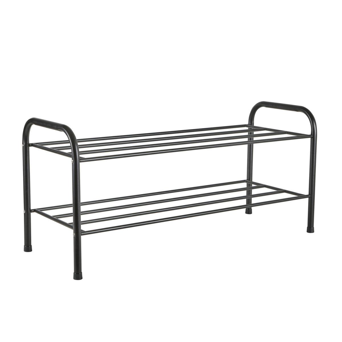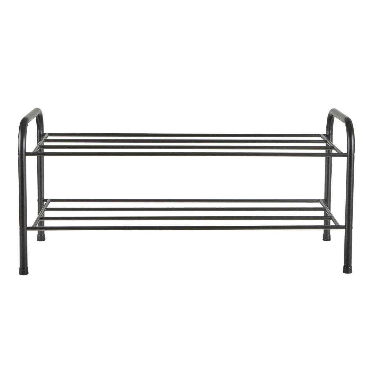 I’m a fan of this slim black metal shoe rack for its clean lines and fuss-free build - it slots easily into narrow hallways, minimalist flats or industrial-style entries. The dark finish works well against both pale and richly coloured walls, and because it sits low it won’t overpower a small space. For a practical yet polished look, group pairs by season (trainers on top, boots underneath) and tuck a couple of woven baskets or canvas boxes on the bottom tier for scarves or gloves. Position a slim mirror or a row of hooks above, and you’ll have a tidy, ready-to-go drop zone rather than just a place for shoes.