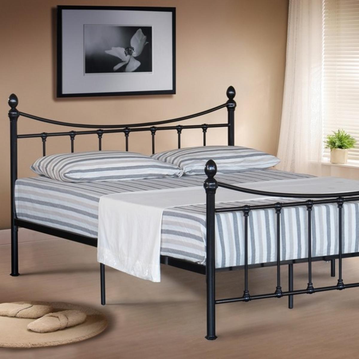 This beautiful classic metal bed frame is available to purchase in black and is available in either 4ft small double, 4ft6 double or 5ft king size. This sleek bed frame shows great traditional features including the delicately designed finials and the gently curved headboard and footboard with vertical bars for the classic finish. This solid metal frame comes with solid wooden sprung slats and a centre support rail giving extra sturdiness to this frame.