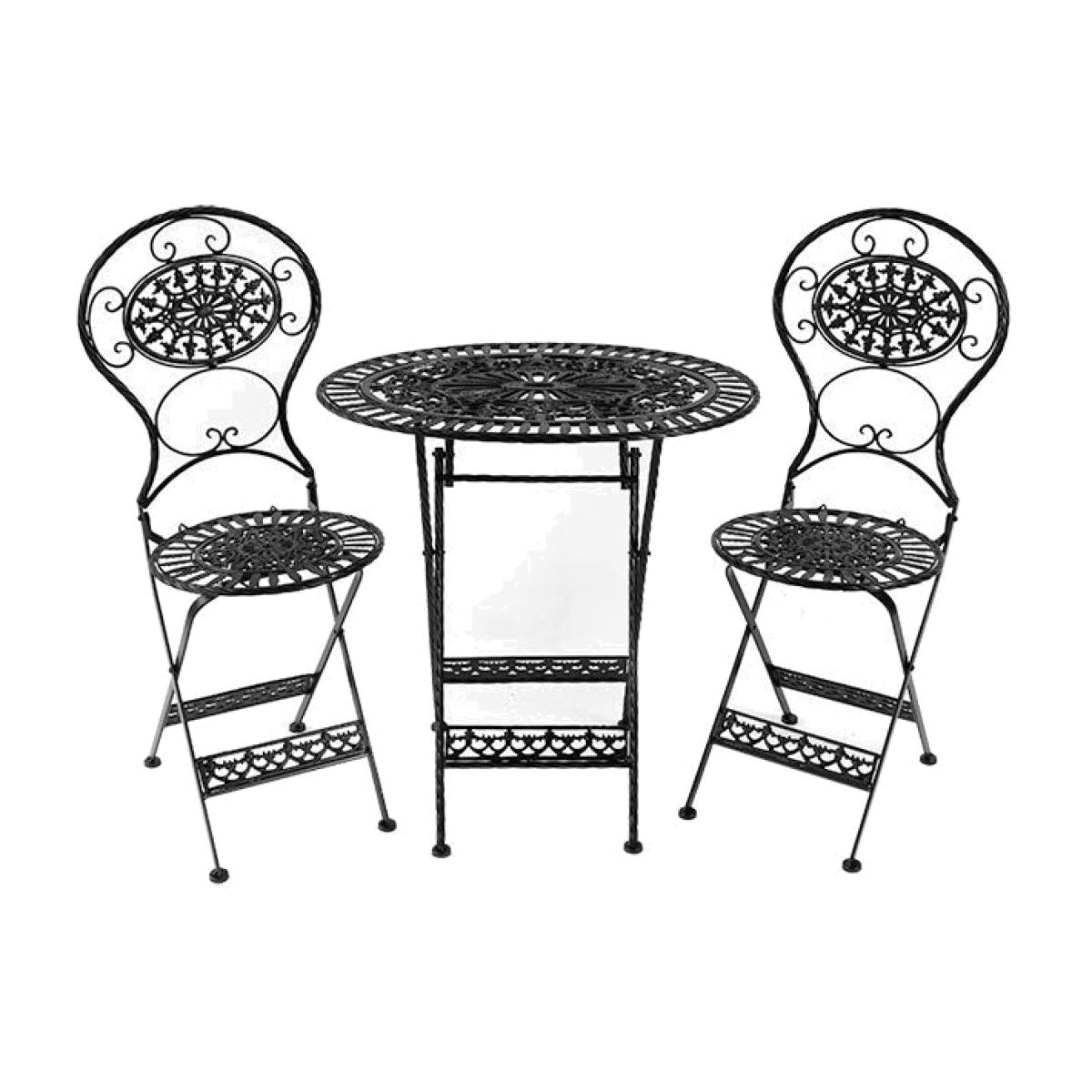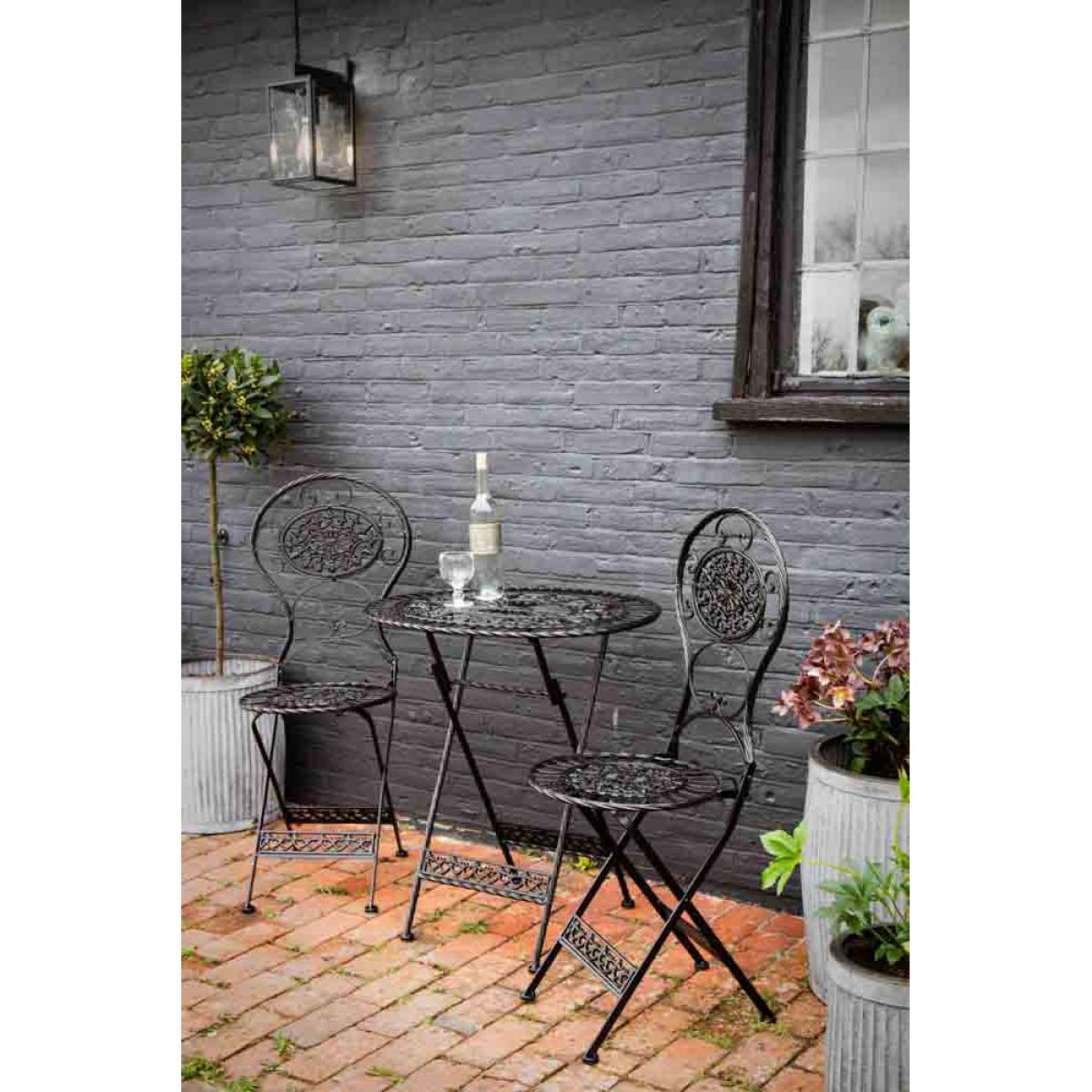 About The Black Garden Table & Chairs SetA must have accessory for enjoying the sunshine in your outdoor space, the Black Garden Table and Chairs Set is an effortlessly stylish addition that will add a gloriously vintage charm to your existing decor. This traditional Metal Table and Chairs is perfect for any patio or garden, no matter what your outdoor space looks like, this set is guaranteed to add a gorgeous retro edge that is also ultra useful in the summer months. Why We Think You’ll Love The Garden Chairs And Table SetThese Metal Garden Table and Chairs are delicate and full of character, with a classic intricate pattern on each piece, this set will inject an interesting feature in your outdoor space that encapsulates a sophisticated yet playful feel. The Round Garden Table and Chairs are sumptuous in style, mixing practical use with dazzling design, thy are the perfect ornamental yet functional adornments for creating a fabulously vintage look amongst any scheme. How To Style The Outdoor Table And Chair SetPair this Outdoor Table and Chairs with the Rockett St George Outdoor Crittal Style Window Mirror to elevate this boldly beautiful look, bringing the feel of a living room outside. The Garden Bistro Table And Chairs will also make a statement styled with the Black Monkey Wall Lamp for a simply show stopping and delightfully dark look that dares to be different.