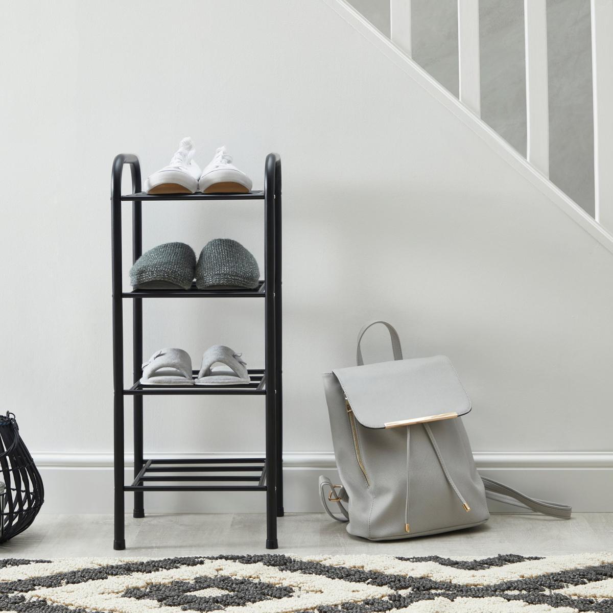 I love the Black Metal Slim 4 Tier Rack for its sleek, minimalist design that works well in both modern and industrial interiors. Its compact size makes it ideal for urban or small hallways, offering practical shoe storage without cluttering the space. To style it effectively, consider using the top tiers for frequently worn shoes or colourful pairs to add a pop of visual interest. Place it near a bench or mirror for a functional entrance station, and pair it with neutral accessories or light wooden elements to soften the bold black metal. It's a stylish yet sensible solution for organising shoes while keeping the look sharp and understated.