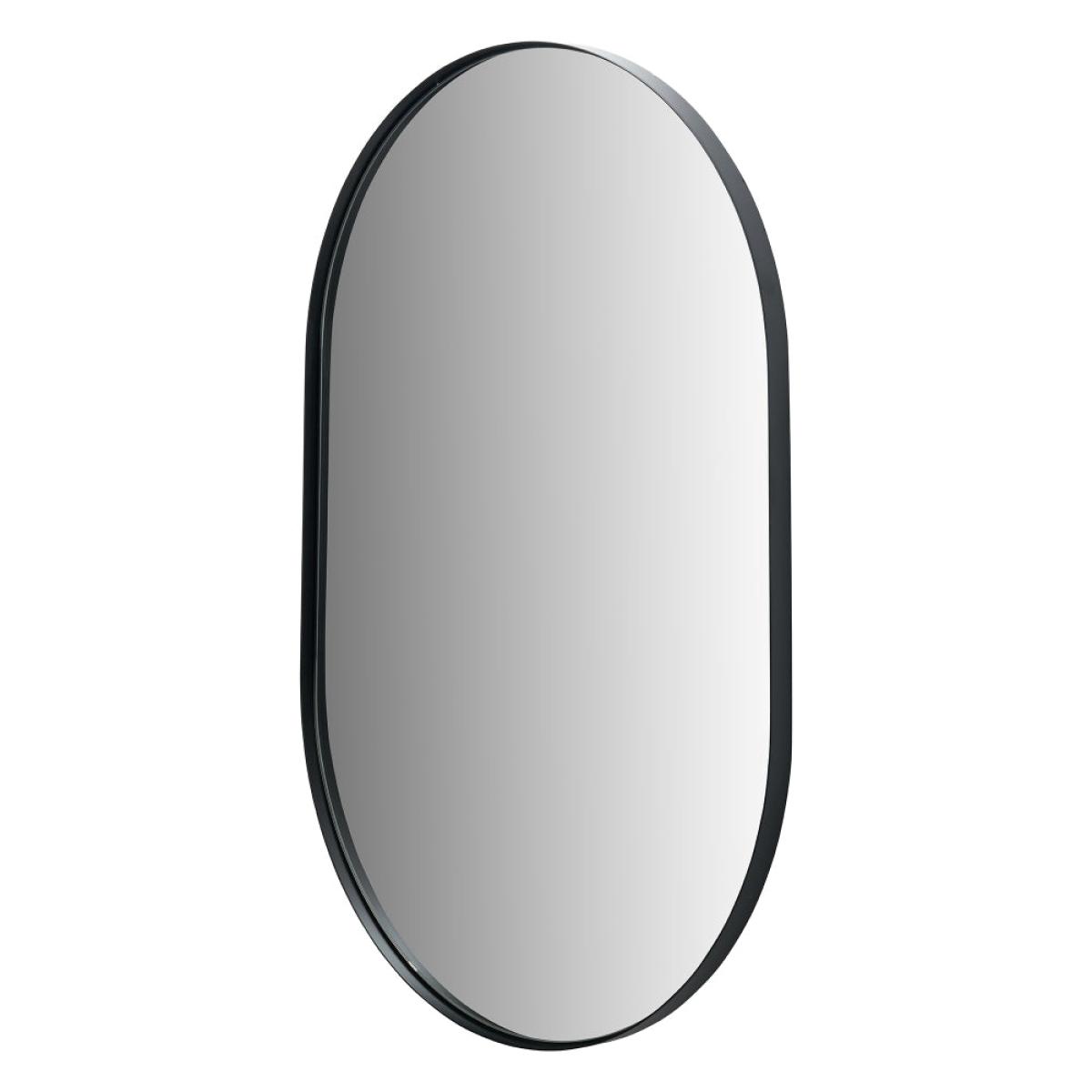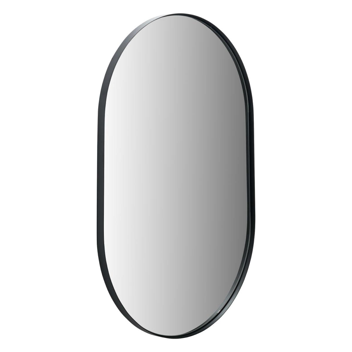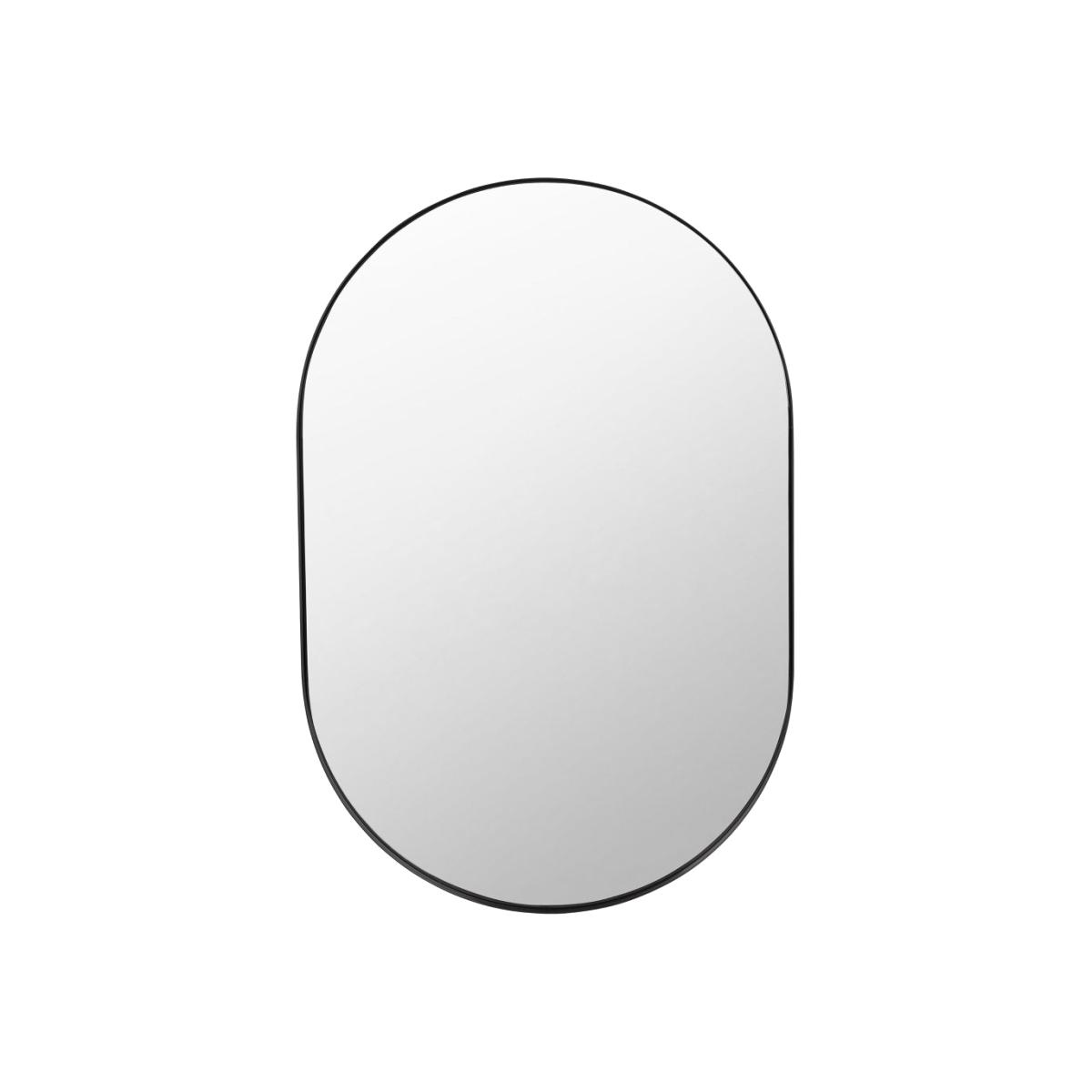 This oval shape mirror has a slim frame, the slender metal frame is finished in a minimalistic matt black. The large mirrored area and delicate styling makes this a versatile piece and the perfect addition to your home. Not suitable for bathroom use.