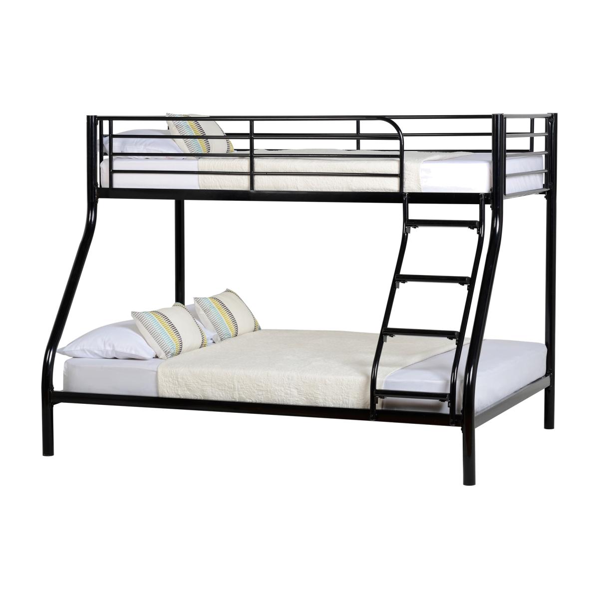 Features we love Black metal triple bunk bed Top bunk bed in UK single size Bottom bed in a UK double size Built in ladder for safe ascent and descent Use our deal to save 10% on selected mattresses All about me The Metal triple bunk bed is the perfect solution for a multi-child bedroom, where space is starting to become a real issue! This contemporary designed triple bunk with its metal frame and bold clean lines make it a great choice for any modern bedroom. The Tandi sleeper combines a double bed below with a single bed above. Need to know Dimensions: W200cm x D147x H154cm Top Bunk Size: Standard UK single (3ft/90x190cm) Bottom Bunk Size: Standard UK Double (4ft6 /135x190cm) Material: Metal Finish: Matte Black Assembly required More info Also available in Silver Great for boys or girls, clean design easily coordinates with any decor style Mattresses are not included and need to be purchased separately Self-assembly is required