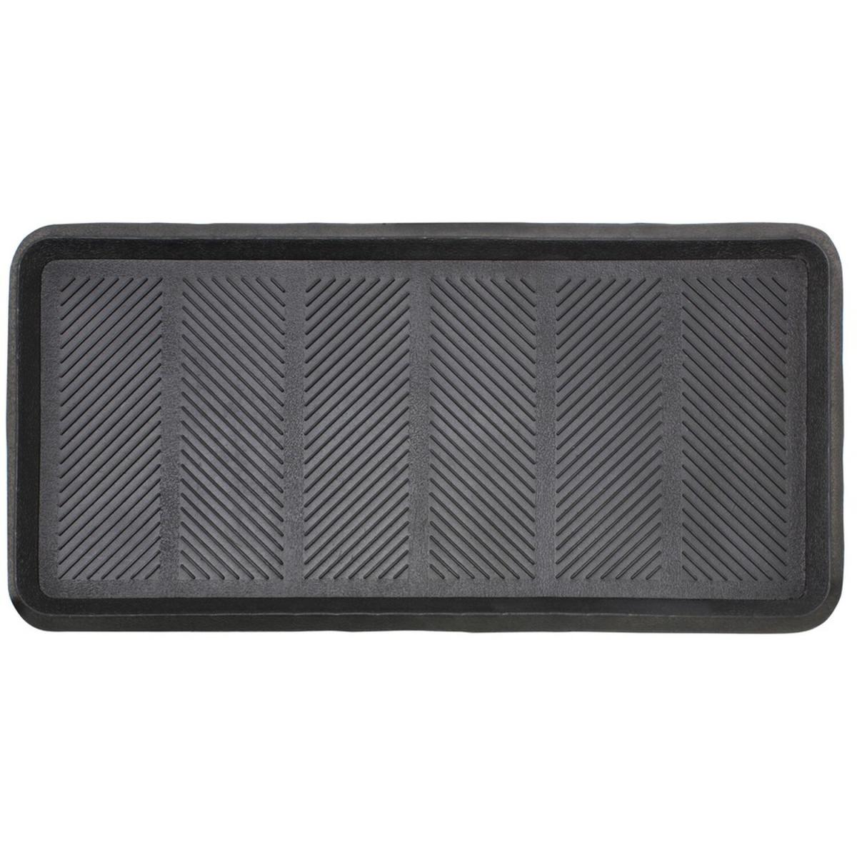 Solve the problem of wet boots languishing on the hall carpet or dripping over carefully polished flagstones. The rubber drip tray is perfect to be left inside the porch, hall or boot room for the muddiest and wettest of boots to be flung off and left to dry, without having to find newspapers or plastic bags to put down first. Made of soft, sturdy black rubber, the tray can simply be washed or hosed down if it gets seriously grubby.