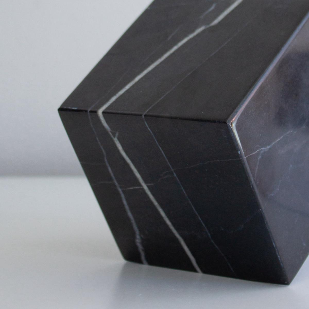 A solid cube of Nero St. Gabriel, this stone object is meant for imagination.  Used for function, these cubes act as rich bookends or pedestals for special somethings.  On their own, they stand as beautiful elements of art. Adorning a bookshelf, accompanying a desk, or simply lounging wherever they deem worthy.