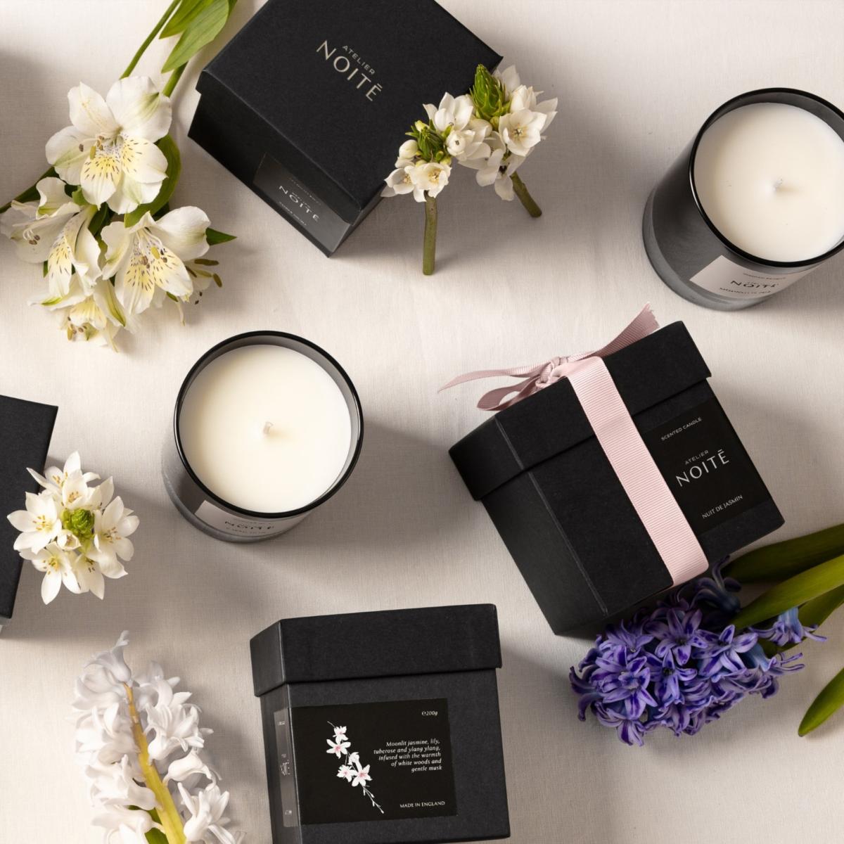 Atelier Noite scented candles from our Nightflower Collection add a touch of luxury to your evening. Uplifting, sensual, and slightly enigmatic, Nuit de Jasmin is a delicate early evening scent to light when the sun slips behind the horizon. This fragrant bouquet of jasmine and white florals are complemented by a comforting base of white wood and gentle musk; reminiscent of warm Mediterranean evenings at the beginning of summer