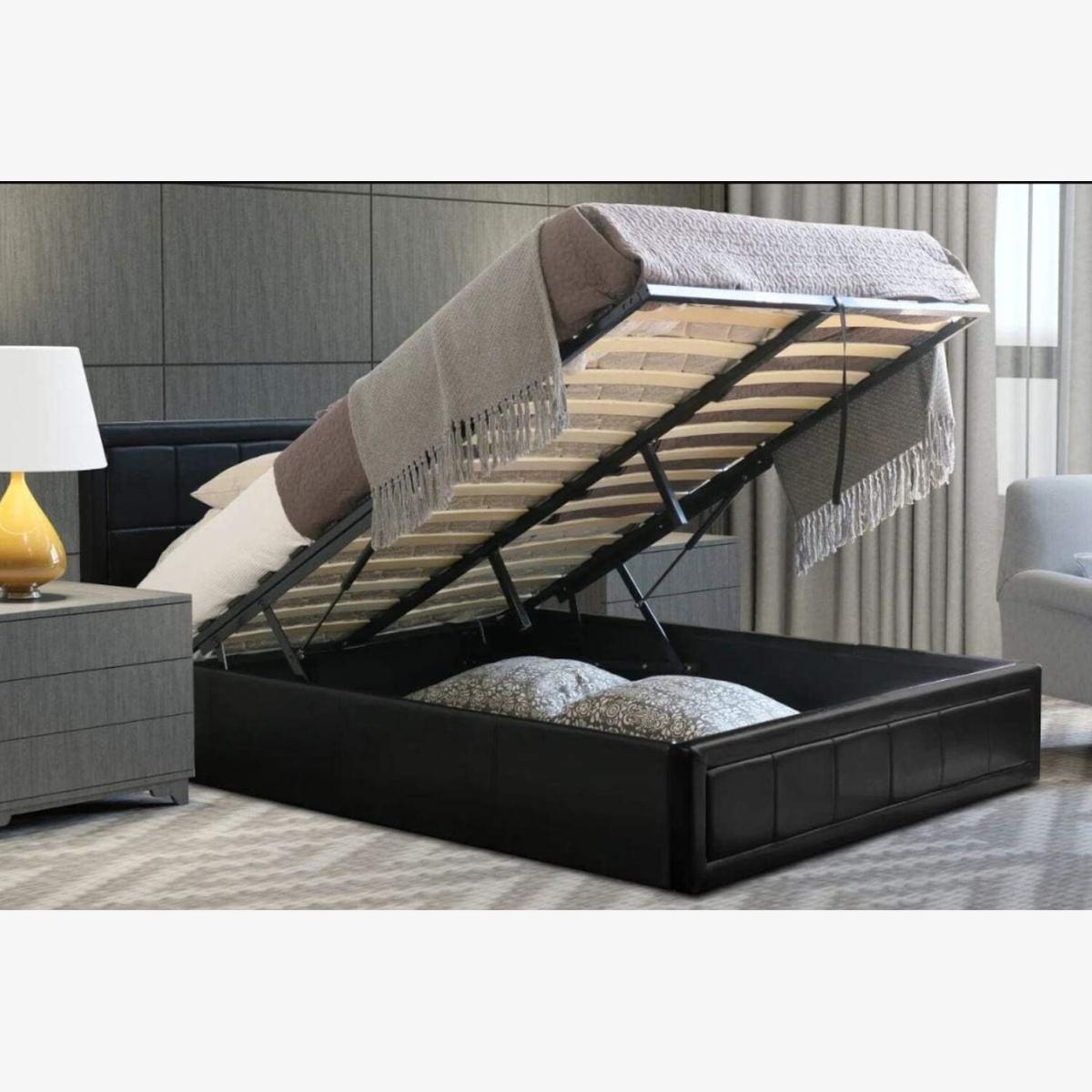 A stylish, modern-style faux leather bed with the addition of all-important storage. Upholstered beautiful Black faux leather will effortlessly blend into any bedroom interior. This modern ottoman bed lifts easily to reveal a huge amount of storage space. Create extra space in your bedroom with the under bed storage with easy gas lift access. The bed has a padded headboard, base & sides and low foot end for space saving as well as Sprung wooden slats for support and strength. Pocket Sprung Mattress is 16cm thick with independent springs adapt to the body and a padded quilted top layer. It's a medium firm mattress with a breathable hypoallergenic cool touch cover. Anti dust + Anti mite.
