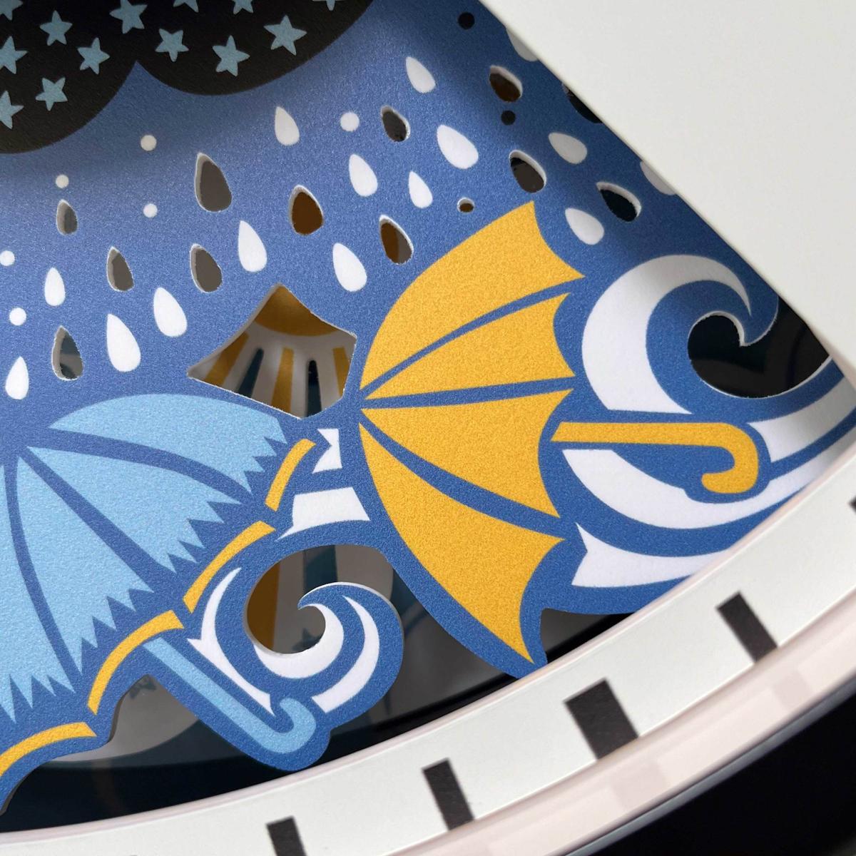 Taking inspiration from intricate hand-cut artworks and designed to evoke a sense of childlike wonder, this is a Weather Art Clock we are especially proud of. Emily Hogarth's intricate cuts have moved from paper to clock parts, resulting in, as she describes, "magical world of paper and shadow dancing within” to illustrate all weather conditions. A strictly limited edition of just 250 clocks, hand-assembled in small batches at our workshop.