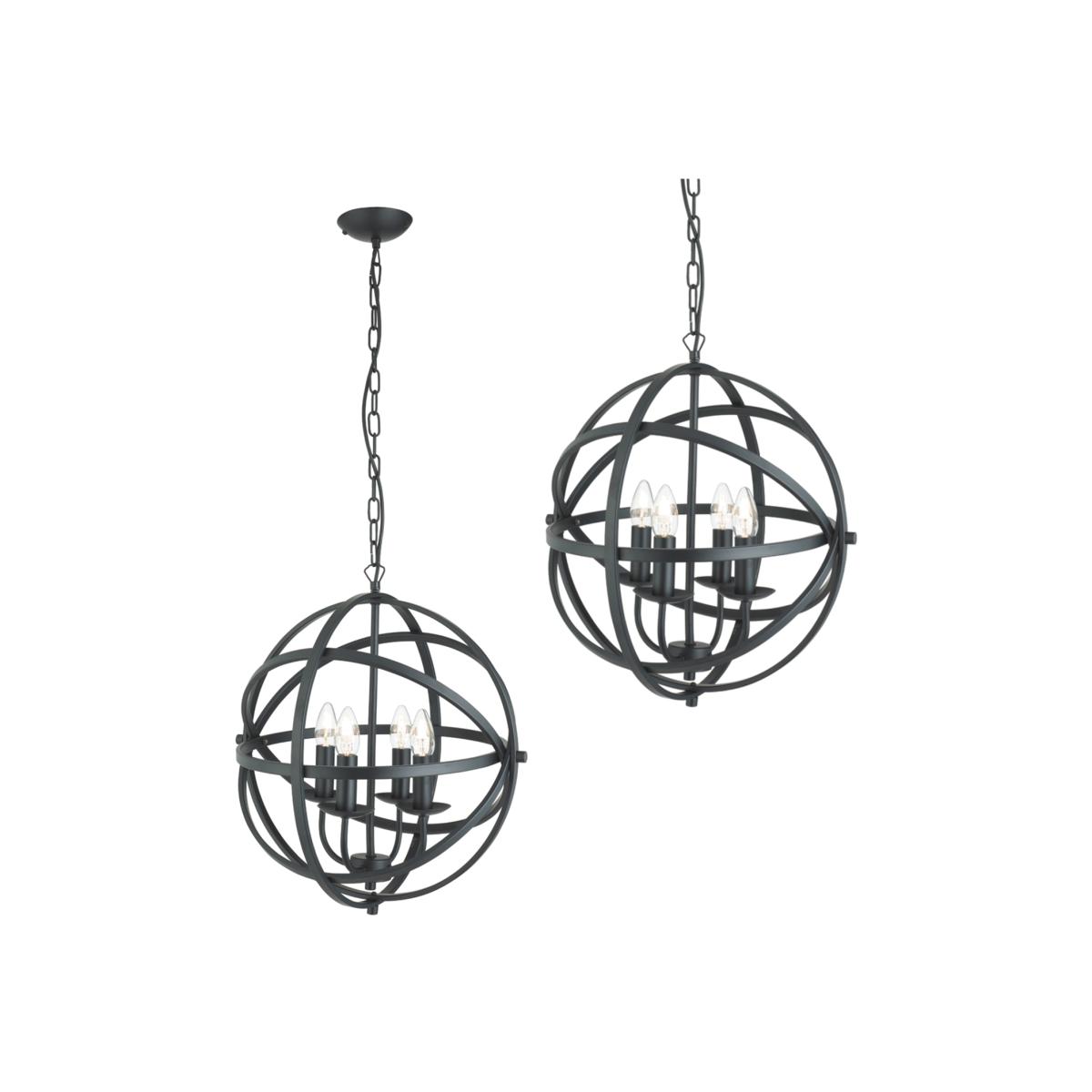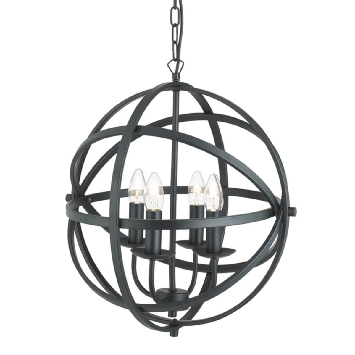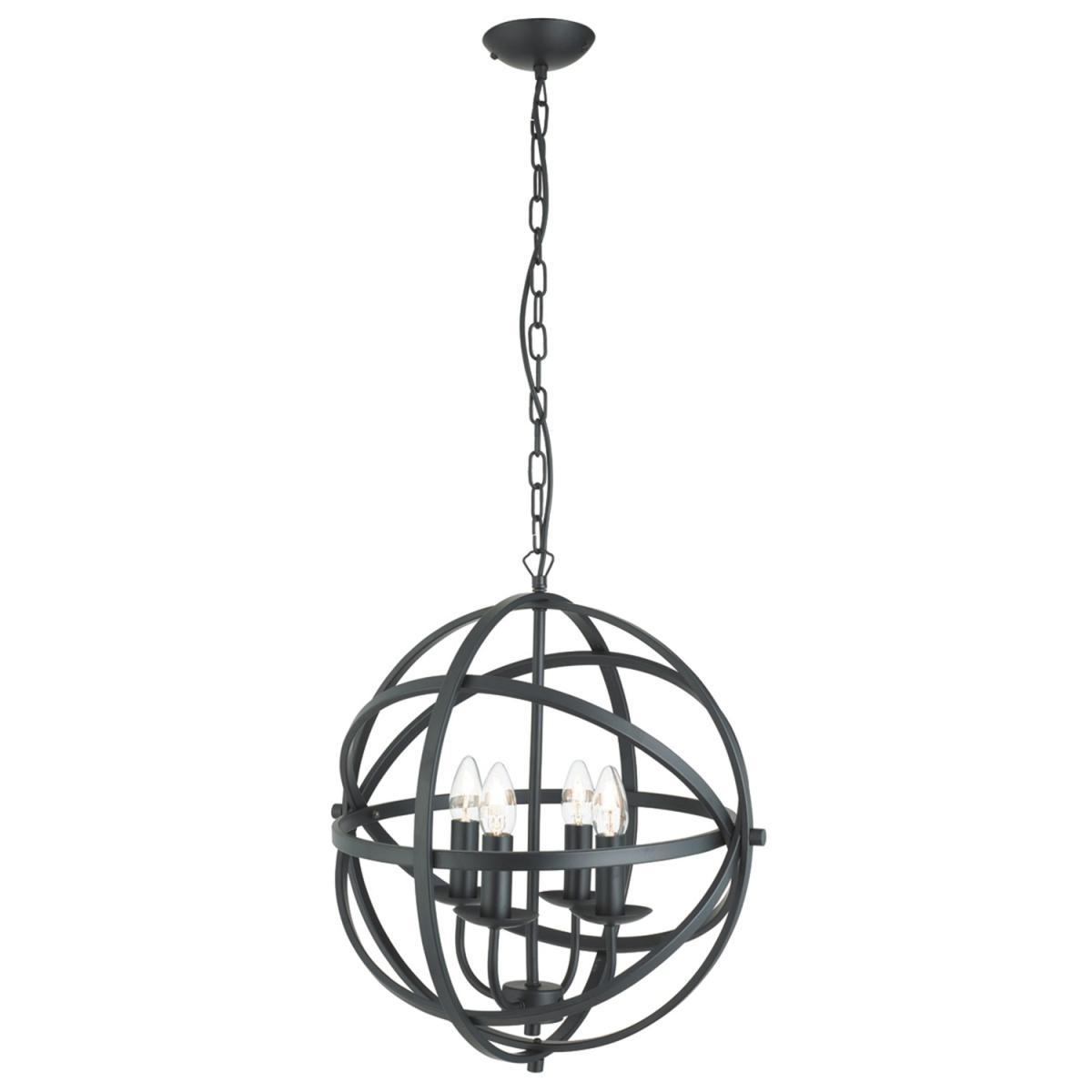 Dimensions H116 x W45.5 cm. This Orbit Matt Black Pendant Light with 4 candle lights is hard to miss. The spherical fitting has a beautiful style and an elegant presence that would make a great centrepiece for any contemporary living space. Each of the four rings making up the orb are finished in a modern matt black and interlink to create a magnificent spherical pendant and the four candle lights positioned centrally provide more than sufficient illumination for any room. Features. Beautiful style and an elegant presence. Great centrepiece for any contemporary living space4 candle lights. Matt Black finish. Adjustable at the point of installation Assembly required..