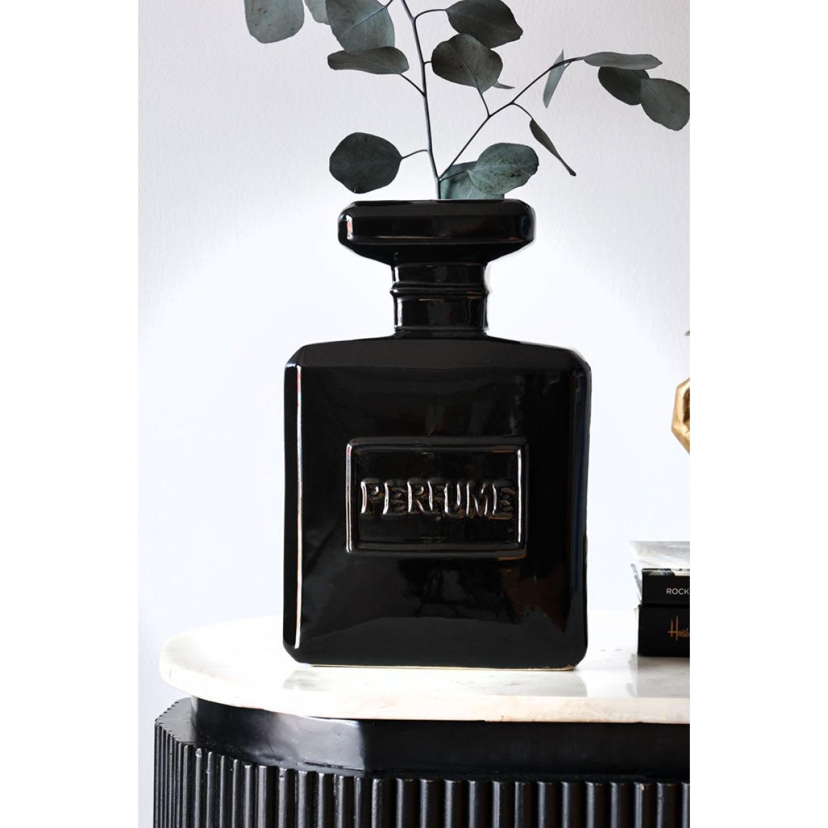 Inspired by vintage perfume bottles, the Black Perfume Bottle Vase is a glamorous vase unlike any other. The perfect alternative to plain glass vases, the fabulous perfume bottle shape and gorgeous black gloss earthenware finish promise to make a statement when styling flowers in your home. We love luxury fragrances at RSG, and something as simple as a spritz of your favourite perfume can instantly lift your mood. With that in mind, this fabulous flower vase features a vintage perfume bottle design to bring a hint of that luxury feeling to your home. Bold and beautiful, the large vase is ideal for a few stems of fresh or dried flowers and looks great styled in your living room or bedroom to master the art of maximalist glamour. - Black perfume bottle large vase - Measures:H30cm x W20cm x D8cm - Made from fine earthenware - Also available in gold