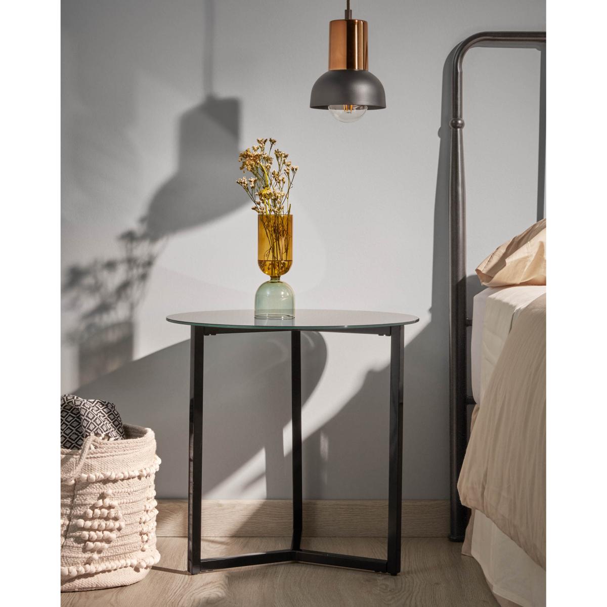 Black Raeam side table made with tempered glass and steel in black finish Ø 50 cm