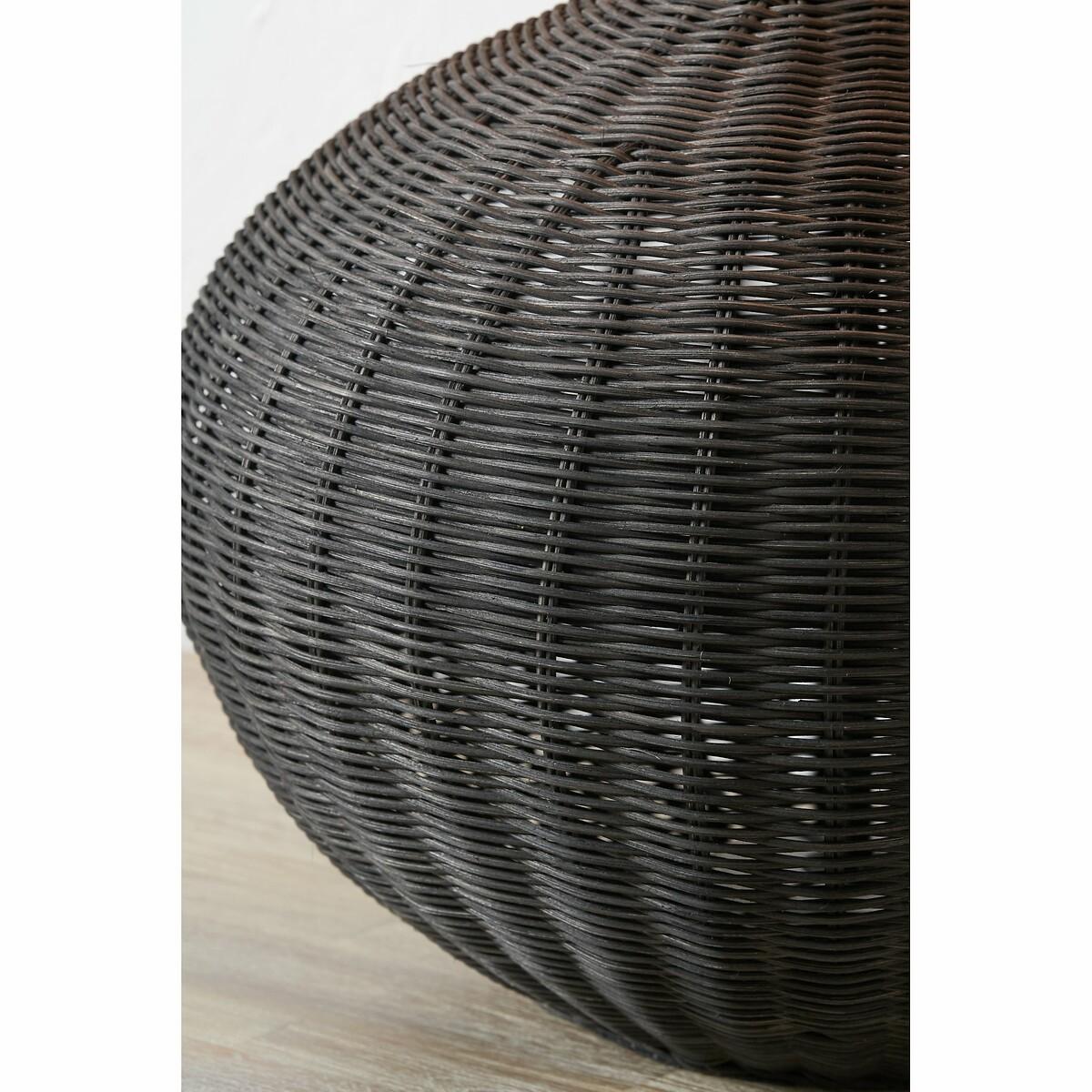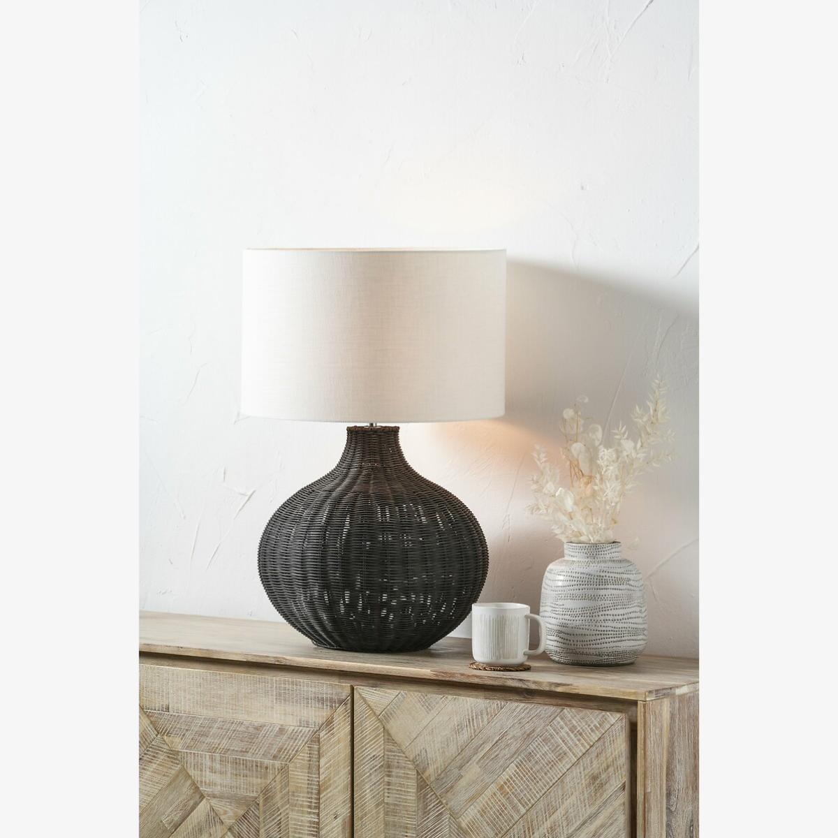 I love this black rattan lamp for its sculptural shape and textural interest, making it a versatile piece for both contemporary and boho-inspired interiors. It works particularly well in living rooms or bedrooms where you want to introduce a tactile element without overwhelming the space. To style it effectively, consider pairing it with natural textures like linen or woven fabrics, and place it alongside warm wood or matte black finishes for a cohesive look. It also lends itself to being a statement piece on sideboards or bedside tables, adding depth and visual intrigue while providing functional lighting. Practical tip: use a slightly warm bulb to soften its darker tone and create a cosy ambiance.