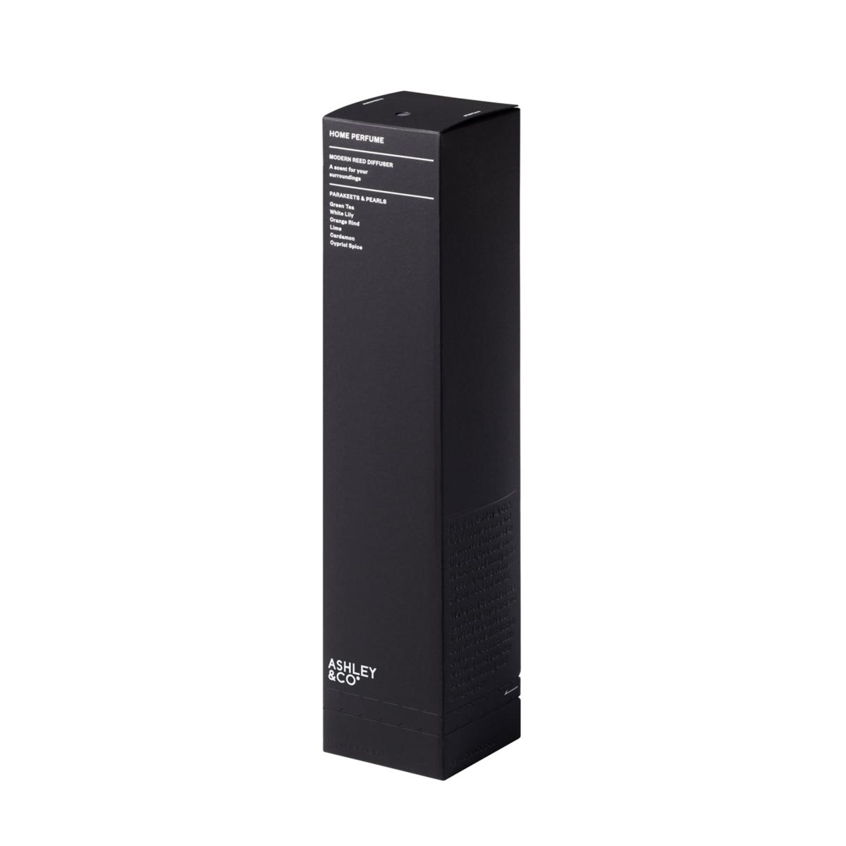 Either proudly on display or discreetly nestled, the modern reed diffuser from Ashley & Co eliminates the conscious task of scenting your home. All day and evening, effortless but hard working, enjoy continuous elegant scent throw of your chosen perfume. Simply allow the perfume to soak & ascend the porous reeds. Parakeets & Pearls - Lily, Cardamon and Tea, with floral spicy accord, is accentuated by the spring like top notes of Citrus Lime, Orange Rind and Bergamot. Refill or Repurpose the handblown glass vessel.