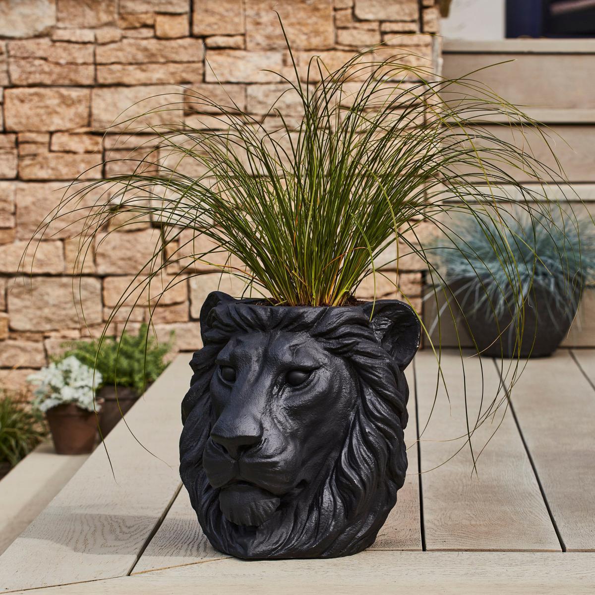 Designed to be stunning and stylish, this black lion head planter adds a beautiful touch to your outdoor space. With a gorgeous timeless design, this planter, crafted from resin, is durable, easy to clean, and perfect for most garden plants. A drainage hole has been adapted into the design to allow excess water to escape from the soil.