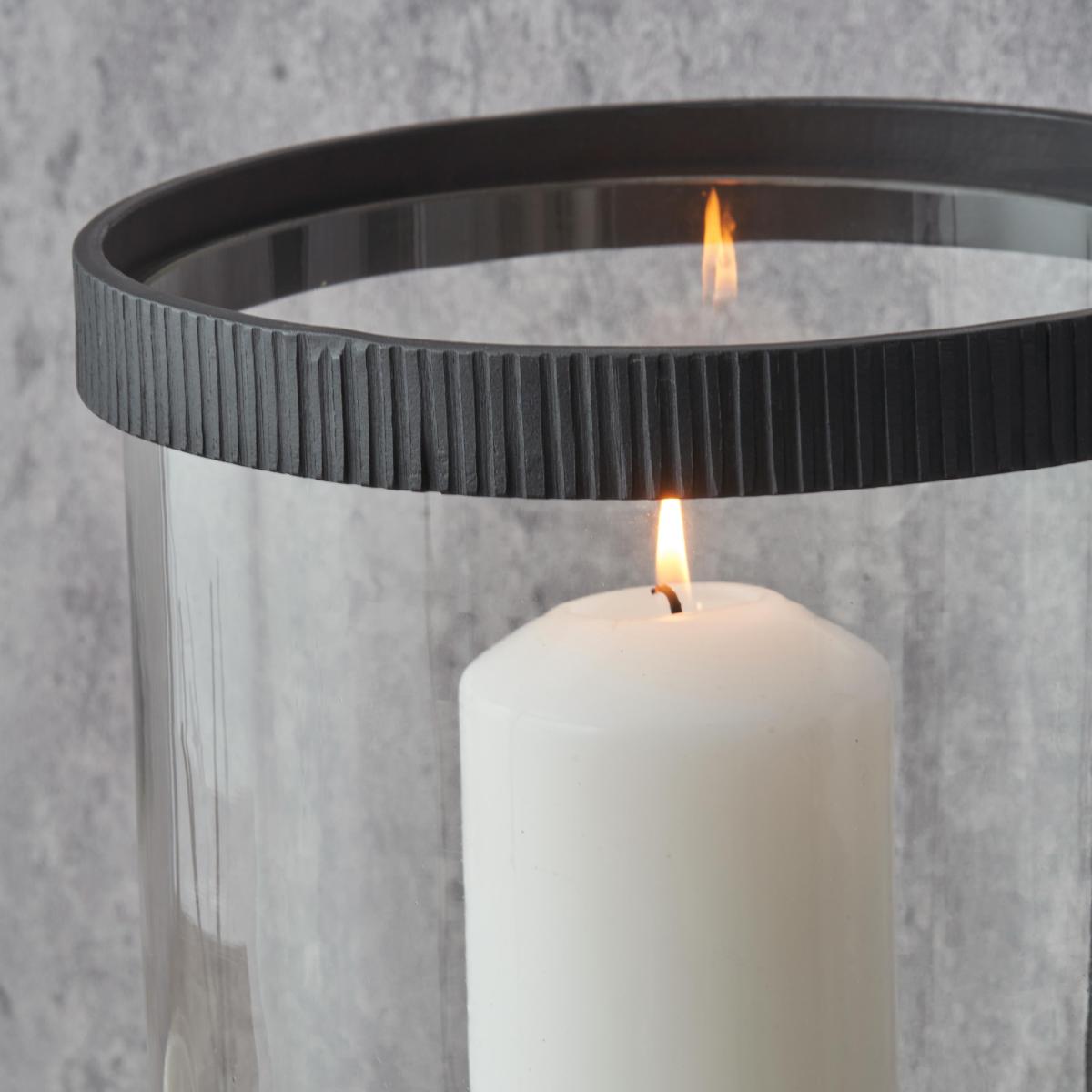 Black Ribbed Metal Glass Cylinder Hurricane Candle Holder