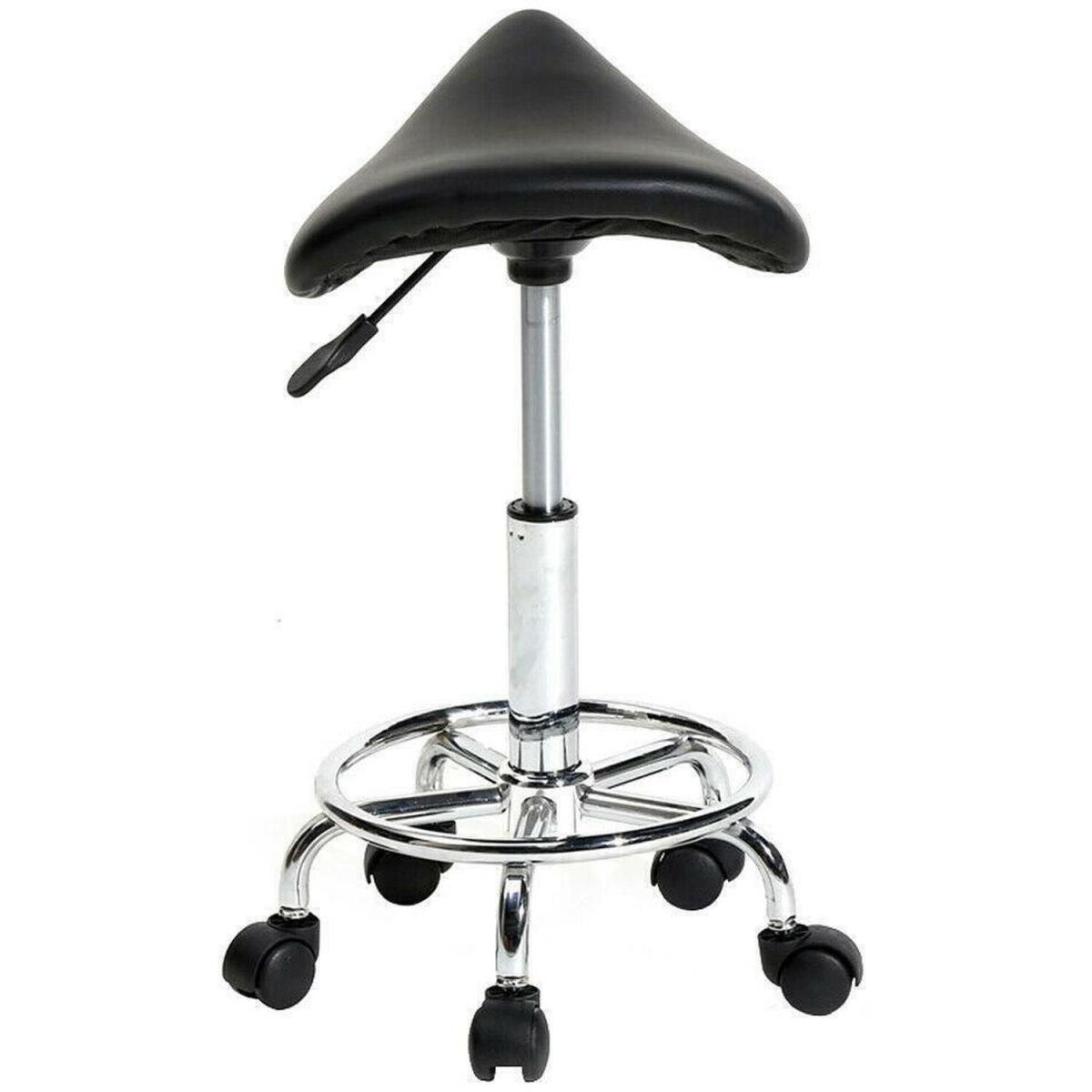 This fashionable and comfortable Saddle Stool Rotation Bar Stool is designed for most of people to sit. It is made of high quality PU leather and sponge and plastic material, durable and soft for you to sit. And it features five casters, so it is easy for you to move it quickly. It is brand new and high quality, so it is the best choice for you! What is more important, it can rotate 360 degrees, very convenient! As a rotation chair, it is full of elegant and soft. Why not get one back home?