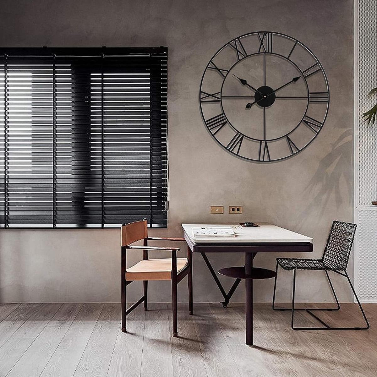 The black Roman 3D metal skeleton clock is a fantastic statement piece that lends an industrial yet sophisticated vibe to any space. I love how its bold, open design makes it suitable for modern, minimalist, or even eclectic interiors, adding visual interest without feeling overwhelming. When styling, consider placing it on a neutral or textured wall to really make it stand out. Practical tips include pairing it with other black or metallic accents, and keeping the surrounding decor simple to let the clock be the focal point. It works particularly well in living rooms, kitchens, or offices where a functional piece can double as an eye-catching design element.