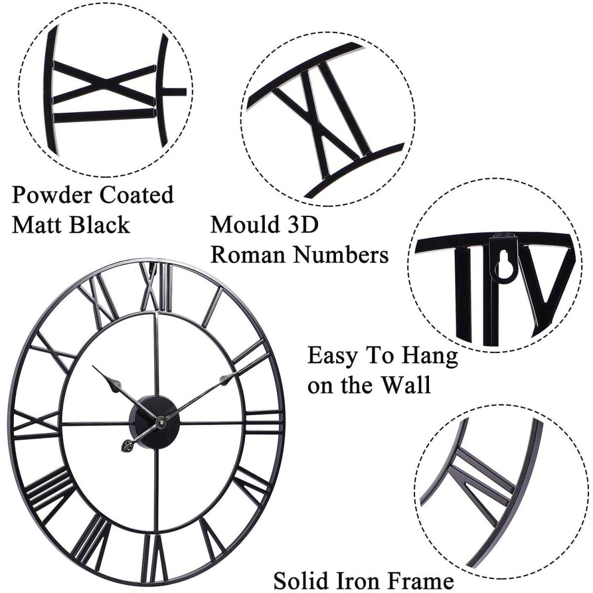 Abaseen wall clocks are made with metal and large roman numerals. It is an attractive timepiece to display in your home. Featuring a beautiful black finish, this circular wall clock is ideal for any wall.