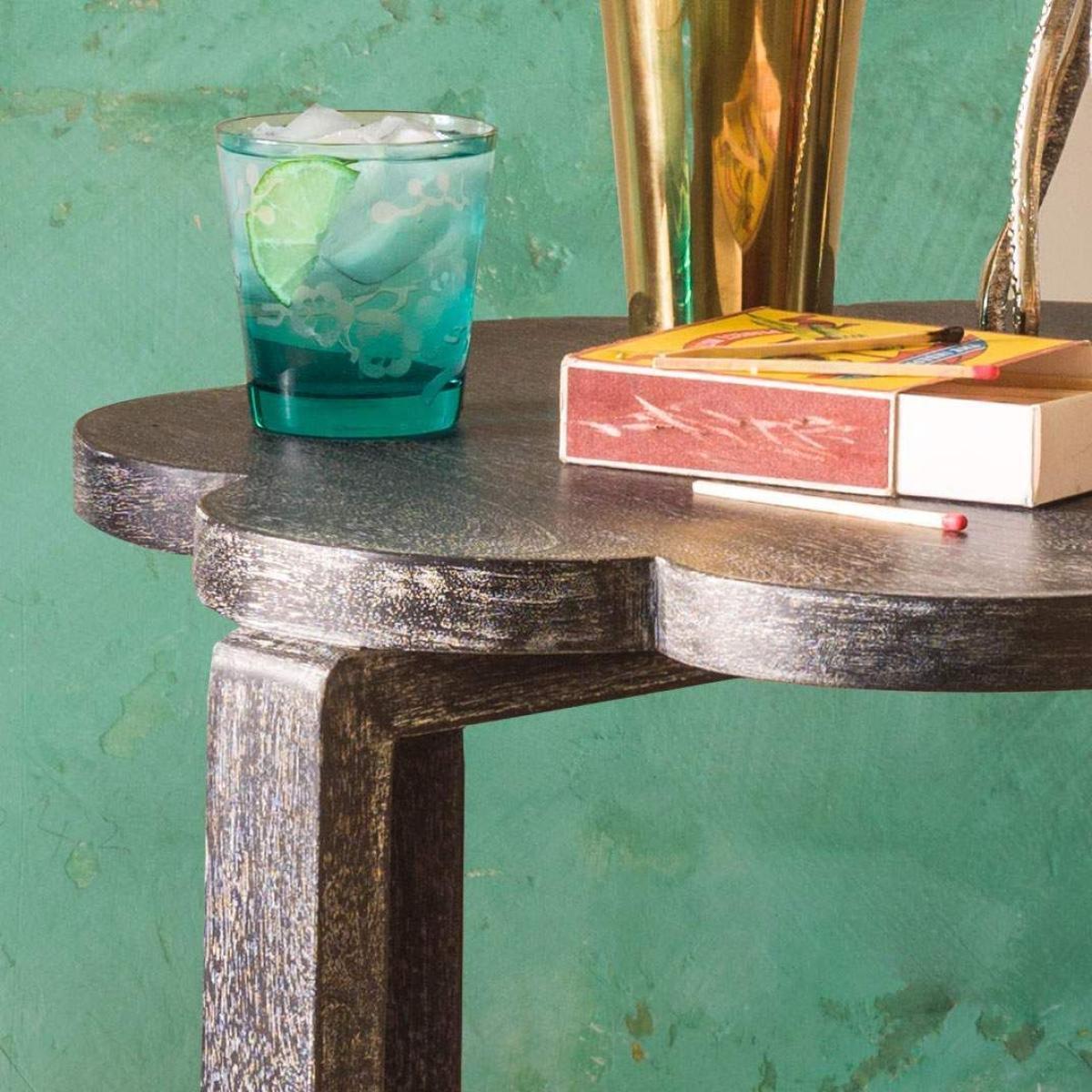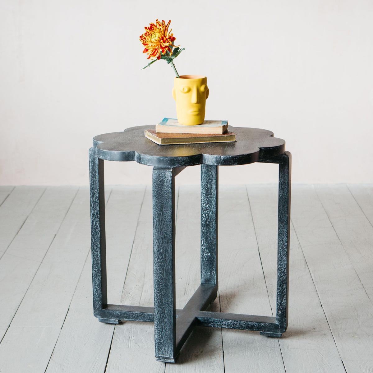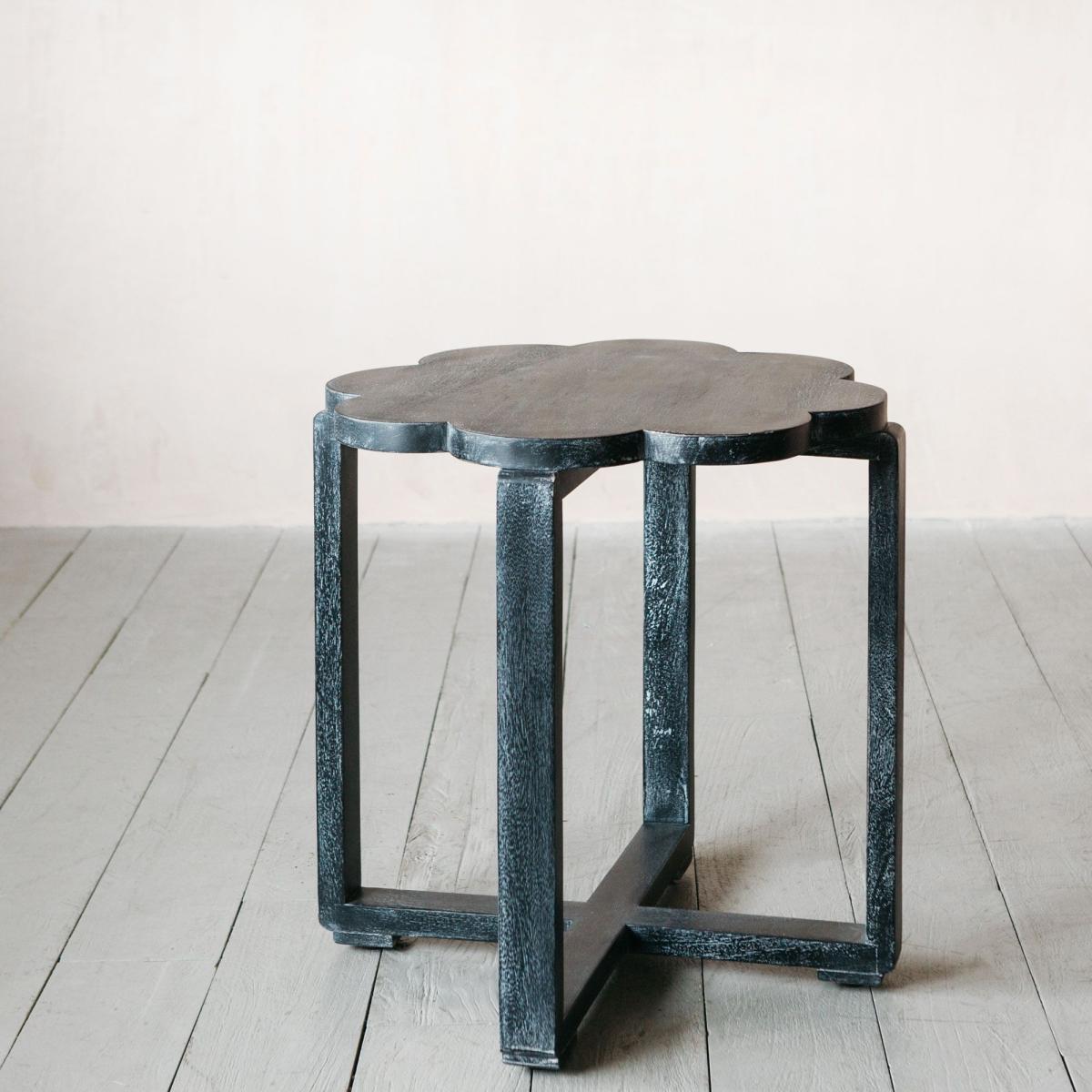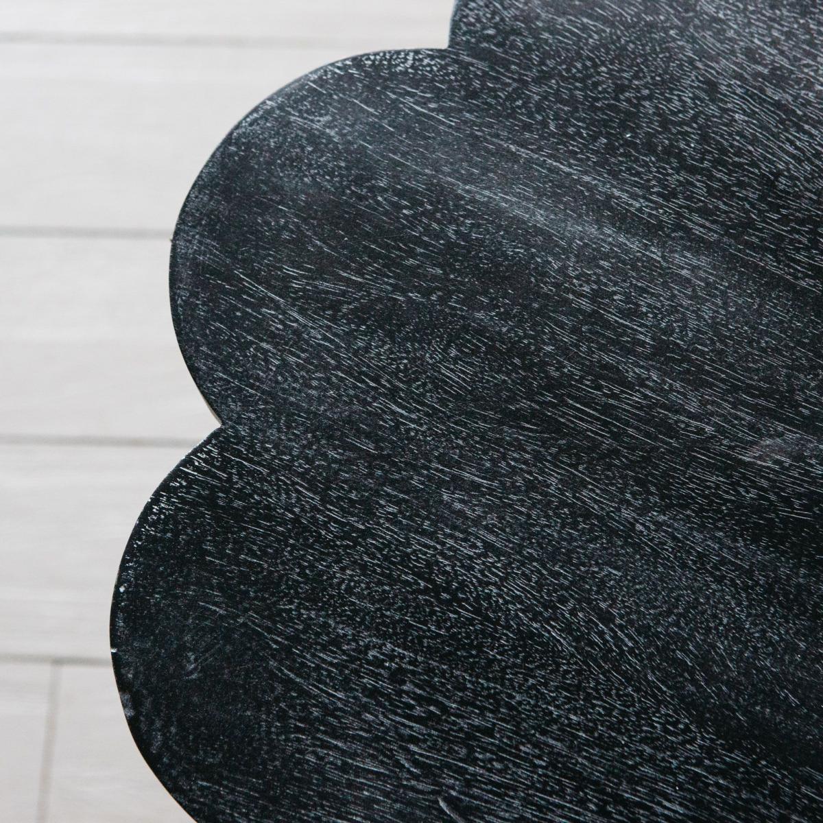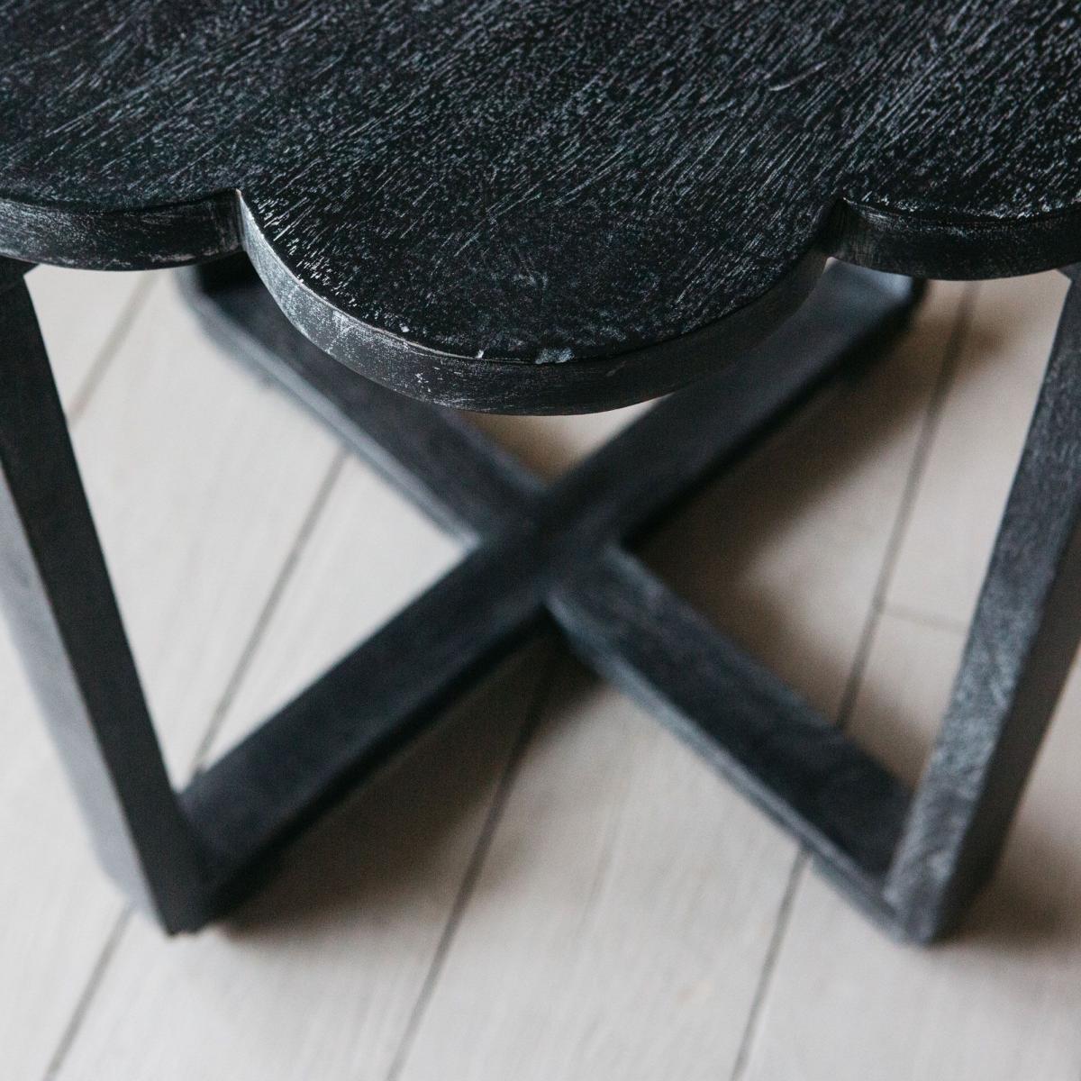 A charming side table with dainty scalloped detailing, crafted from wood with a black wash finish. Perfect for nesting in your favourite chair accompanied by your tipple of choice.