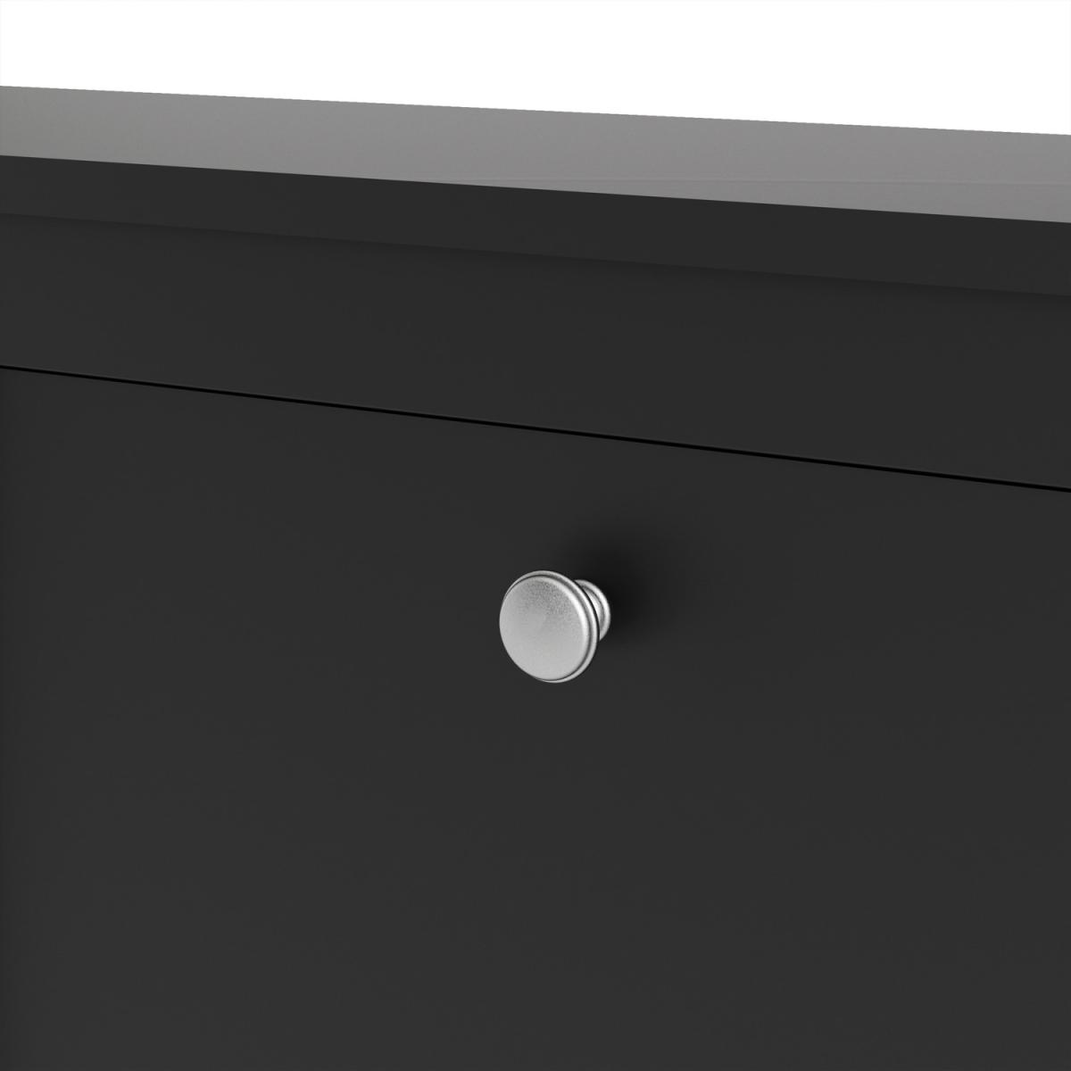 The Madrid shoe cabinet is perfect for your hallway storage needs. The simple designed unit features 4 cupboards which open downwards. The clean black unit is finished with simple silver coloured handles.