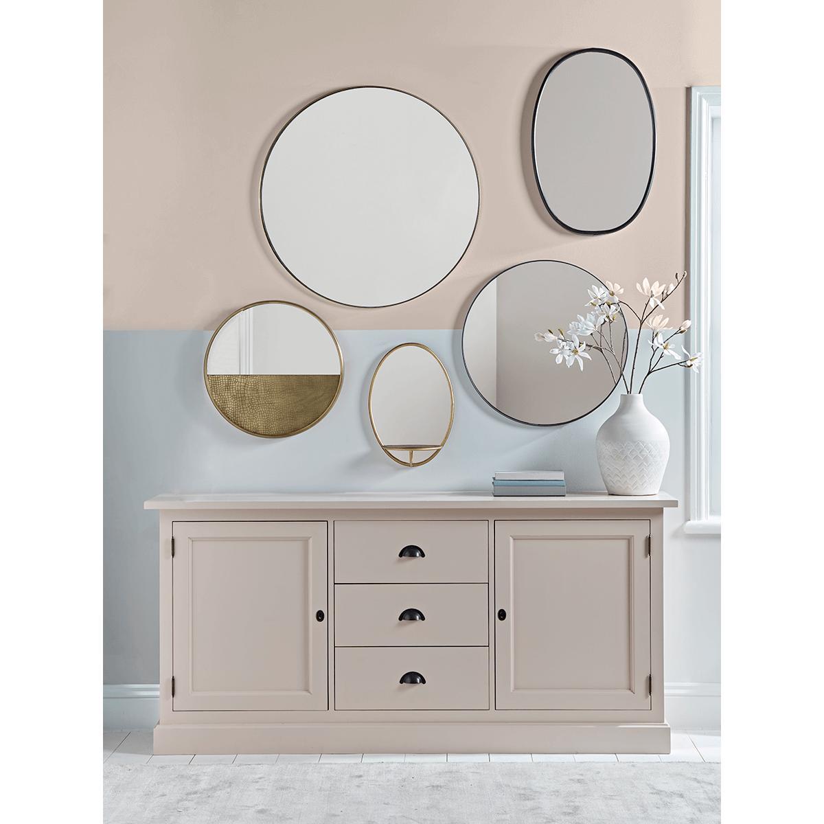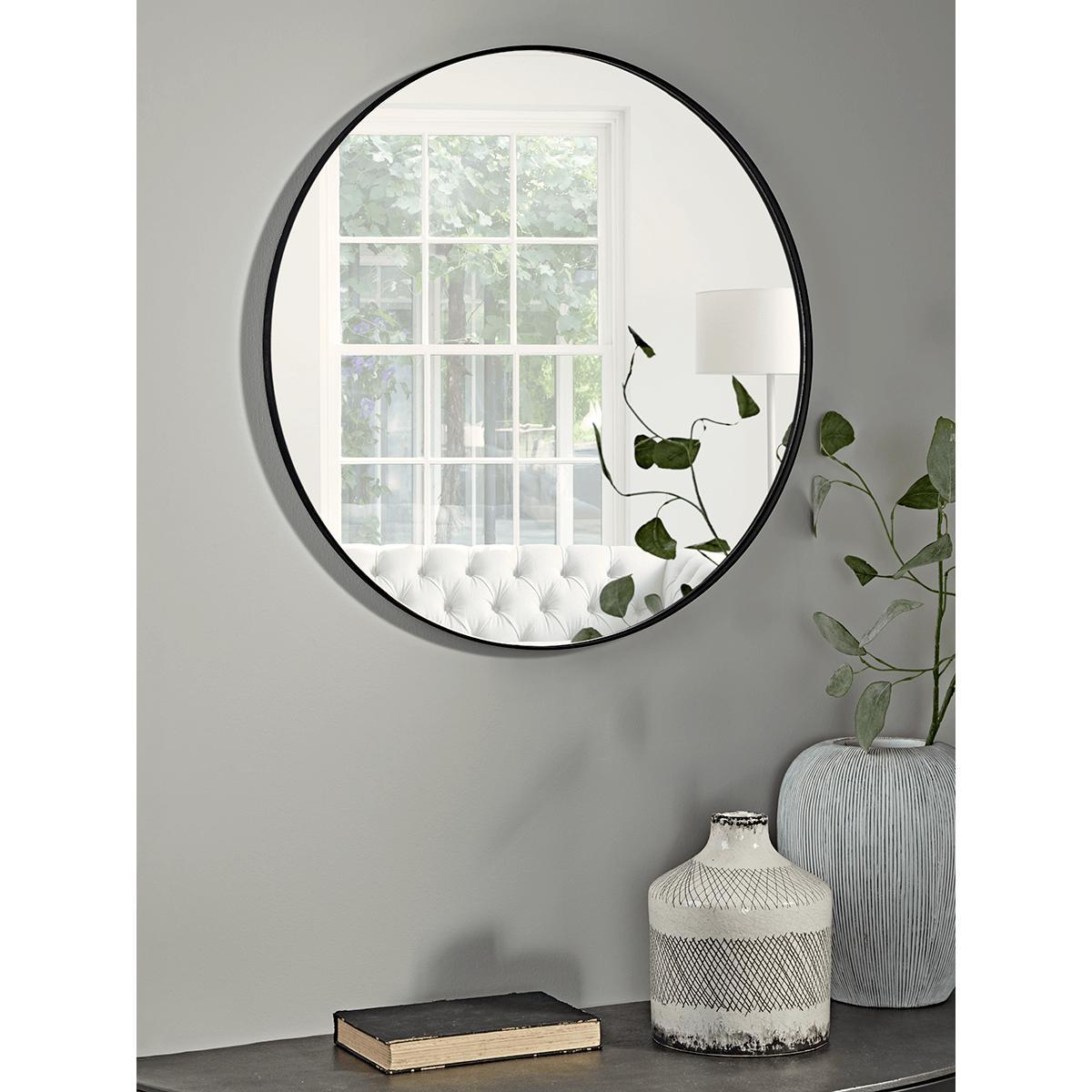 Simple and contemporary, our large, round mirror features the slenderest of frames in minimal matte black. Display above a bench in your hallway, over a console or above your bed to reflect light from all directions and add a modern feature to your wall space. Also available in. Antique Silver. And. Brass.
