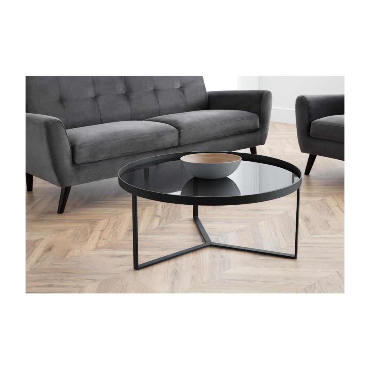 The Loft coffee table features a stunning smoked glass coffee table with black metal frame. The circular coffee table is the perfect place to keep your cup of tea and magazines while you relax on your sofa. The minimalist design will be perfect in the modern home.