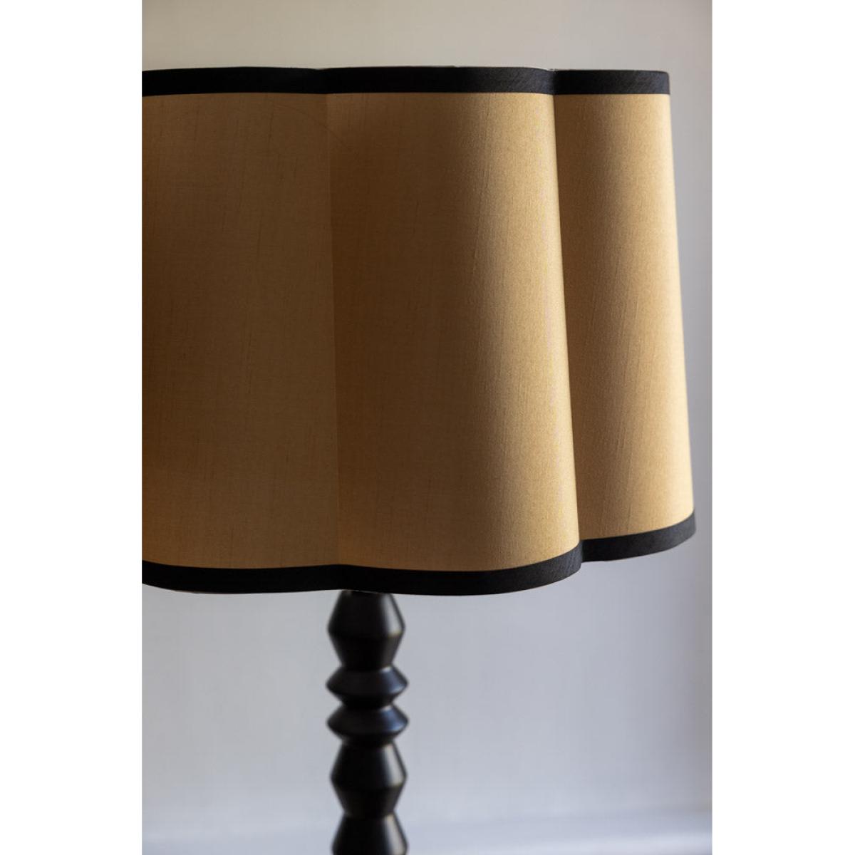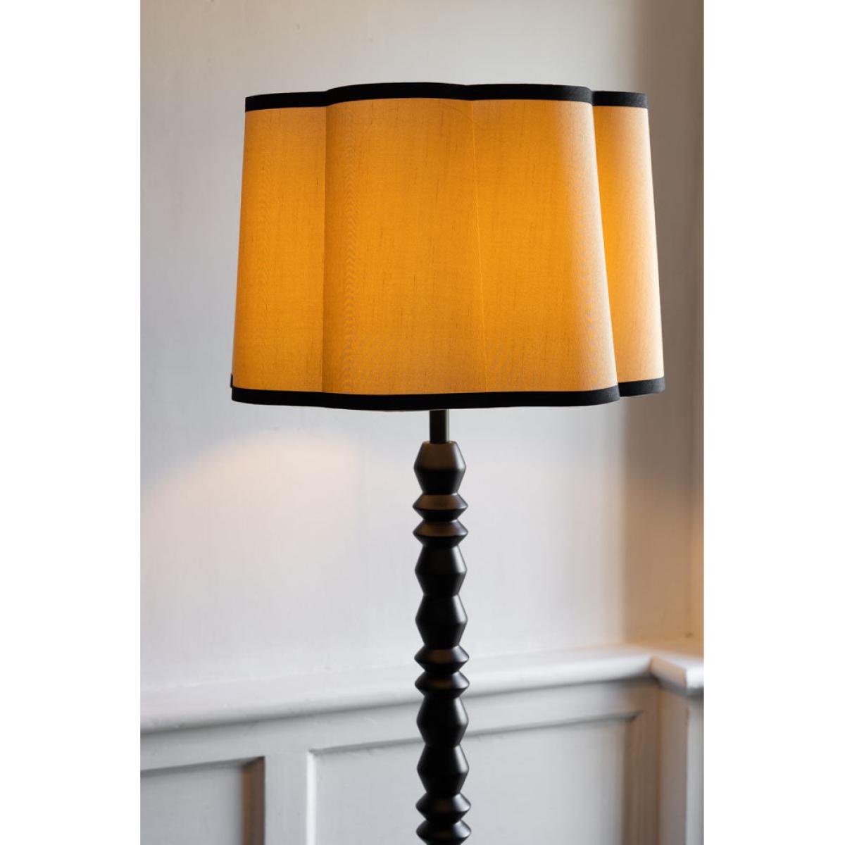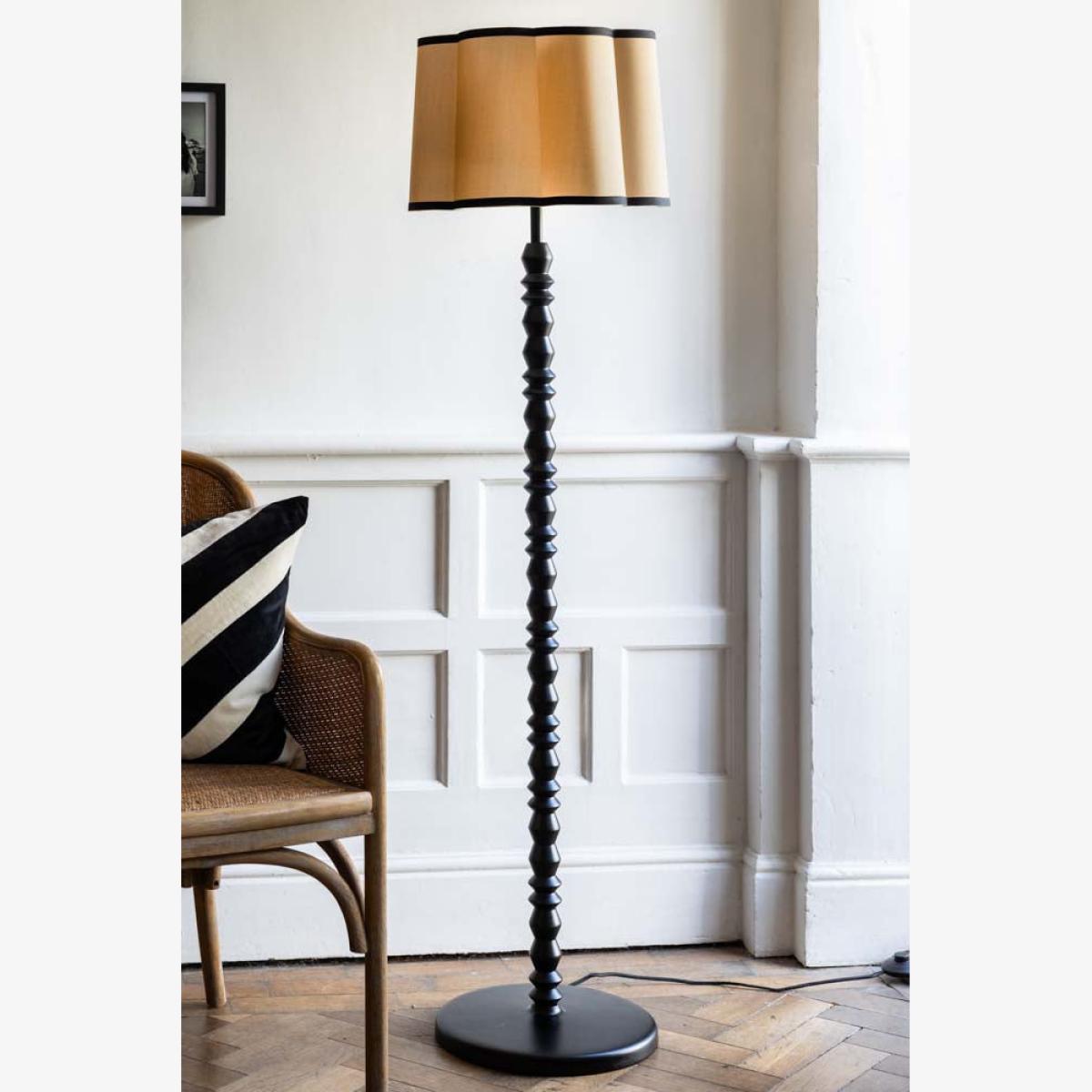 The Black Spindle Floor Lamp With Scalloped Shade combines classic design and trend-led style. A beautiful addition to your living room, hallway or bedroom, the black wooden floor lamp base is designed in homage to bobbin furniture, with the update of asymmetric hexagon shapes in contrast to the bobbin trend’s signature round design. Perfect for modern floor lamp lovers and those with an eye for vintage-inspired style, the black floor lamp features a gorgeous, scalloped lampshade in a natural hue with matching black trim. Proving that neutrals are anything but boring, this statement floor lamp makes a chic statement in your home and brightens any dark corner with a golden glow of light and effortless style. As one of the hero pieces in our collection, this fabulous floor lamp blends beautifully with any interior style. - Black wooden floor lamp with a neutral scalloped lampshade - Measures: H158cm x W42cm with the shade measuring W42cm x H27cm - Requires a 10W E27 LED Bulb