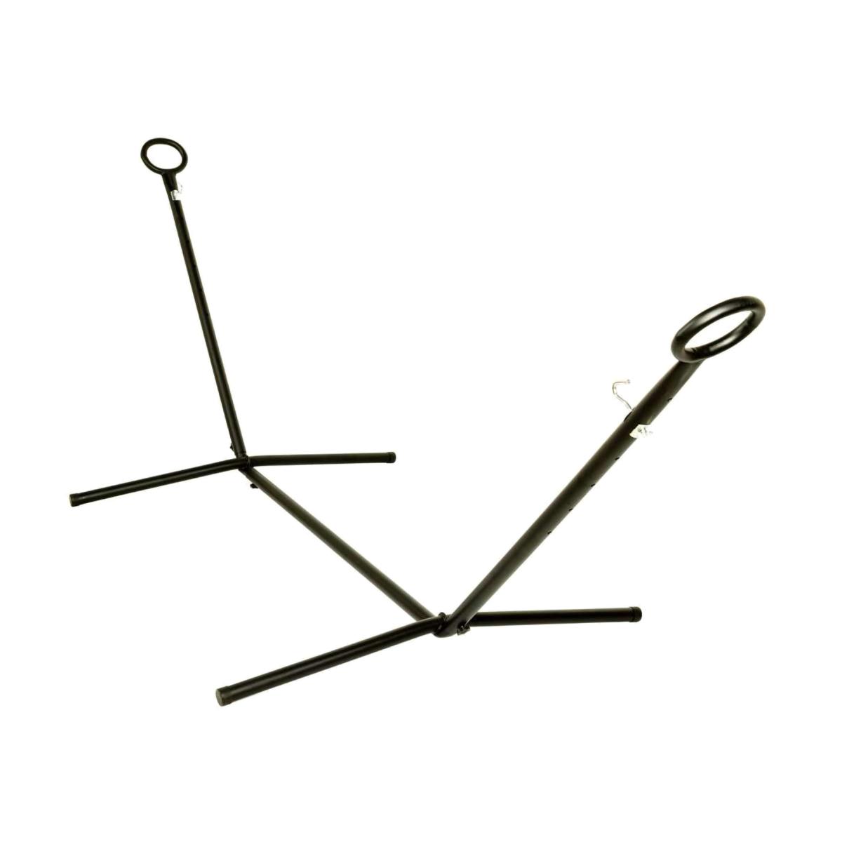 Relax in style with this portable, stylish contemporary steel hammock stand. For single and double hammocks, the perfect way to relax. Black Steel Hammock Stand with Carry Bag Included - Grey