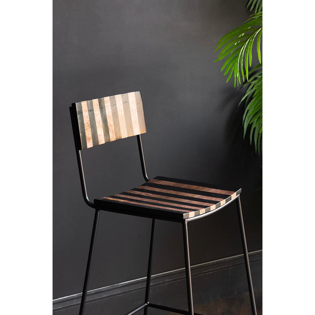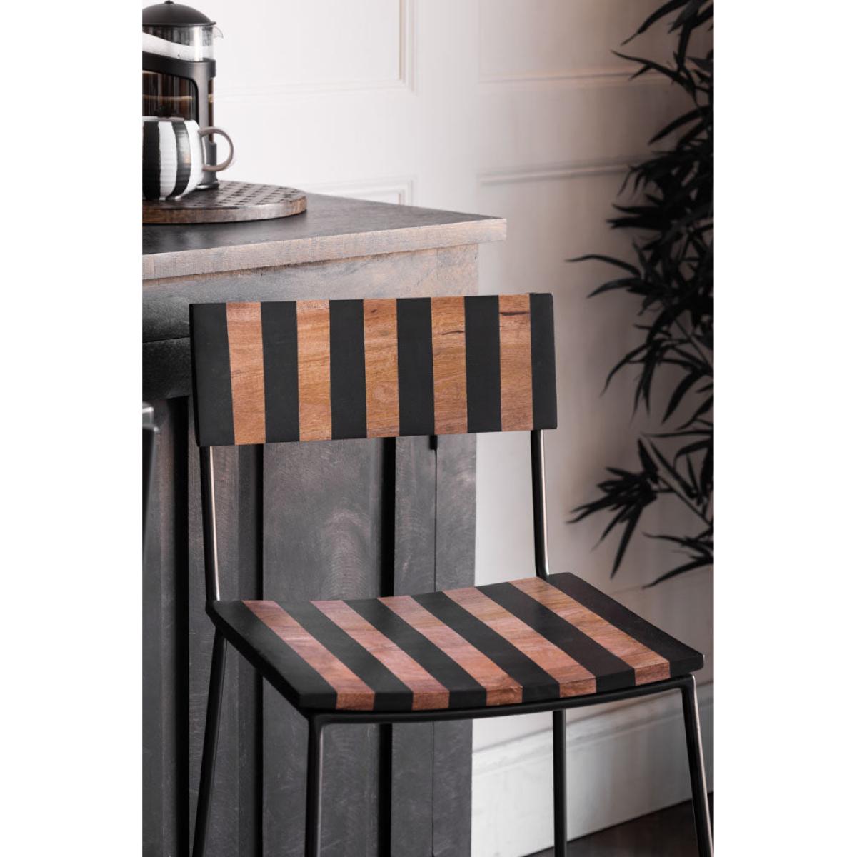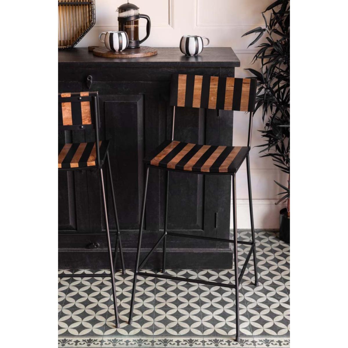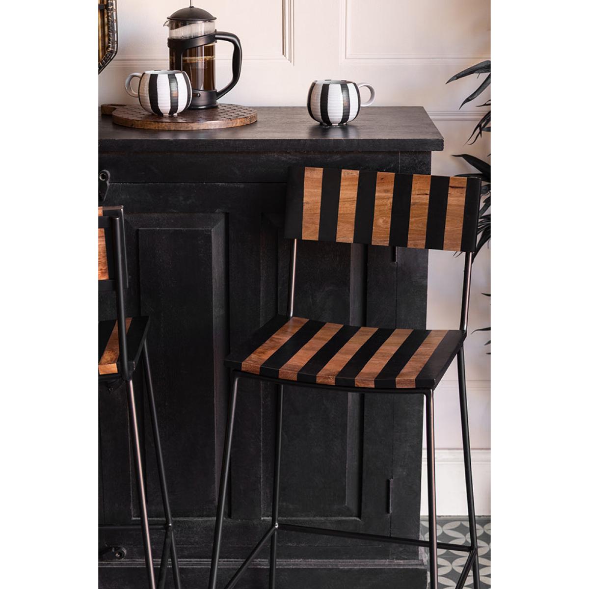 <!--td --> Introducing the Black Stripe Wooden barstool – where rustic charm and sleek sophistication collide! Made from natural and black mango wood, this kitchen barstool's bold striped seat and backrest add instant character. The sturdy black metal legs bring a modern edge, while the rich wood tones keep things inviting and cosy. Whether it’s the centrepiece of a farmhouse kitchen or adding flair to an industrial-chic bar, this modern barstool is all about effortless style. Pull up a seat, pour a drink, and enjoy a perfect blend of rustic warmth and modern cool. - Black Stripe Wooden Bar Stool - Measures: 68cm From Floor To Seat, Total Height: 94cm- Leg Width: 46cm, Leg Depth: 48cm- Seat Width: 36cm, Seat Depth: 30cm - Materials: Mango Wood & Metal