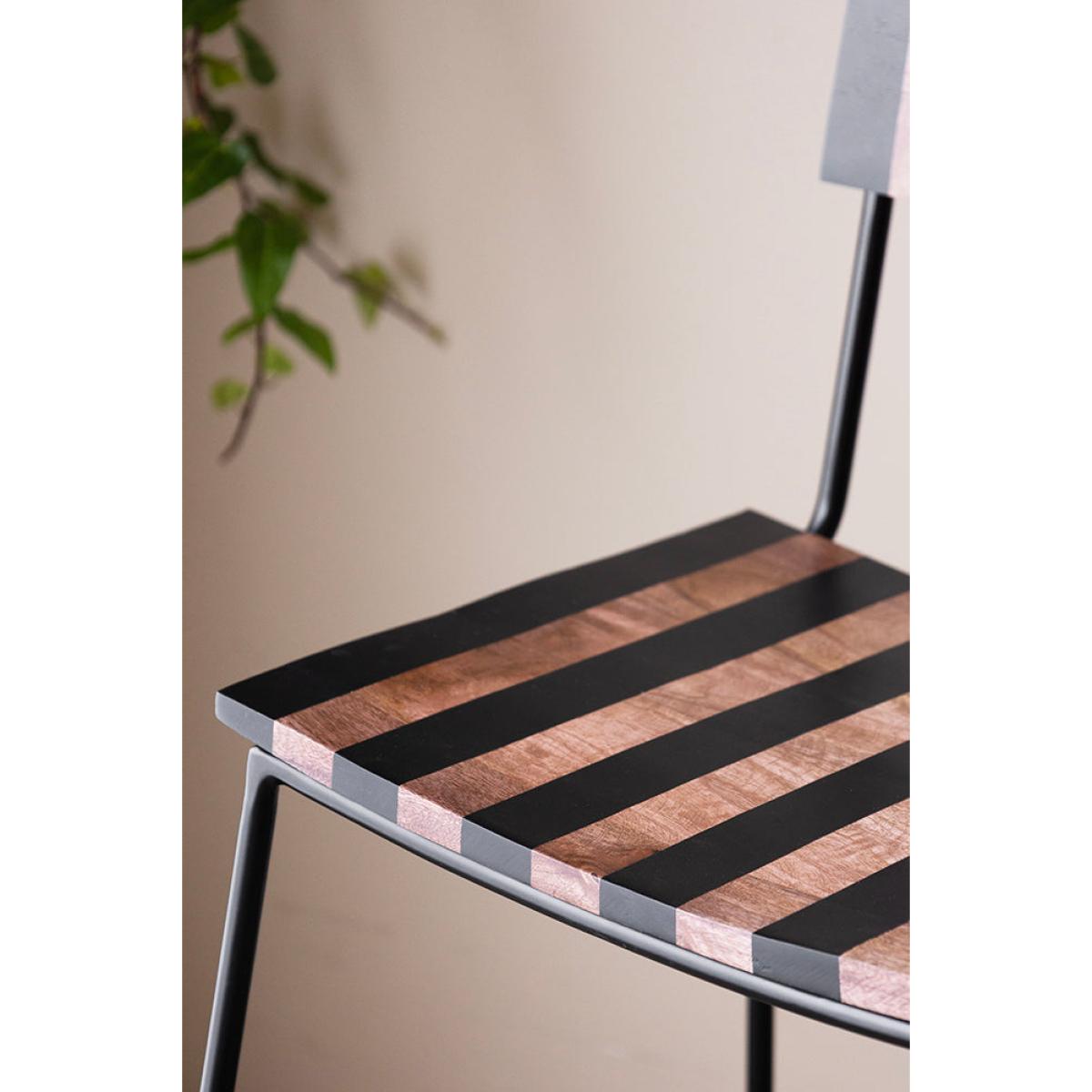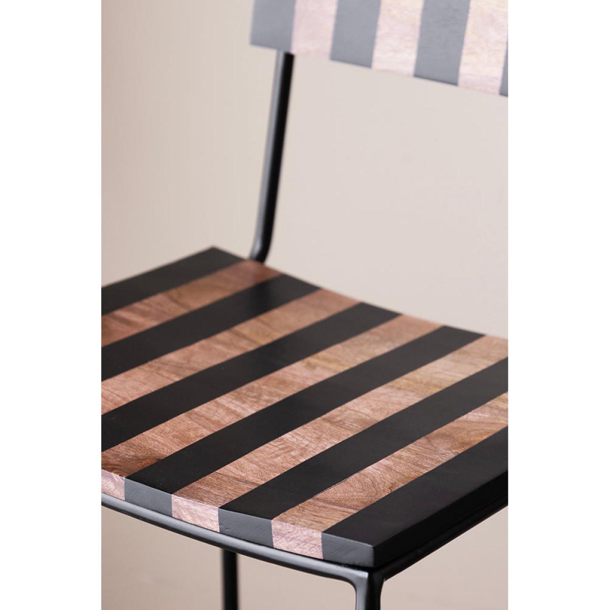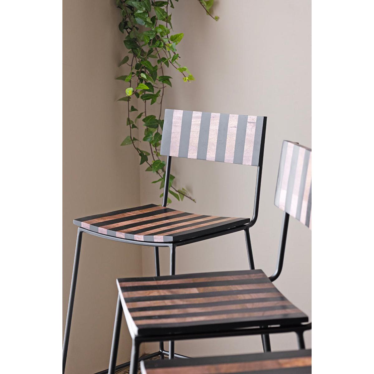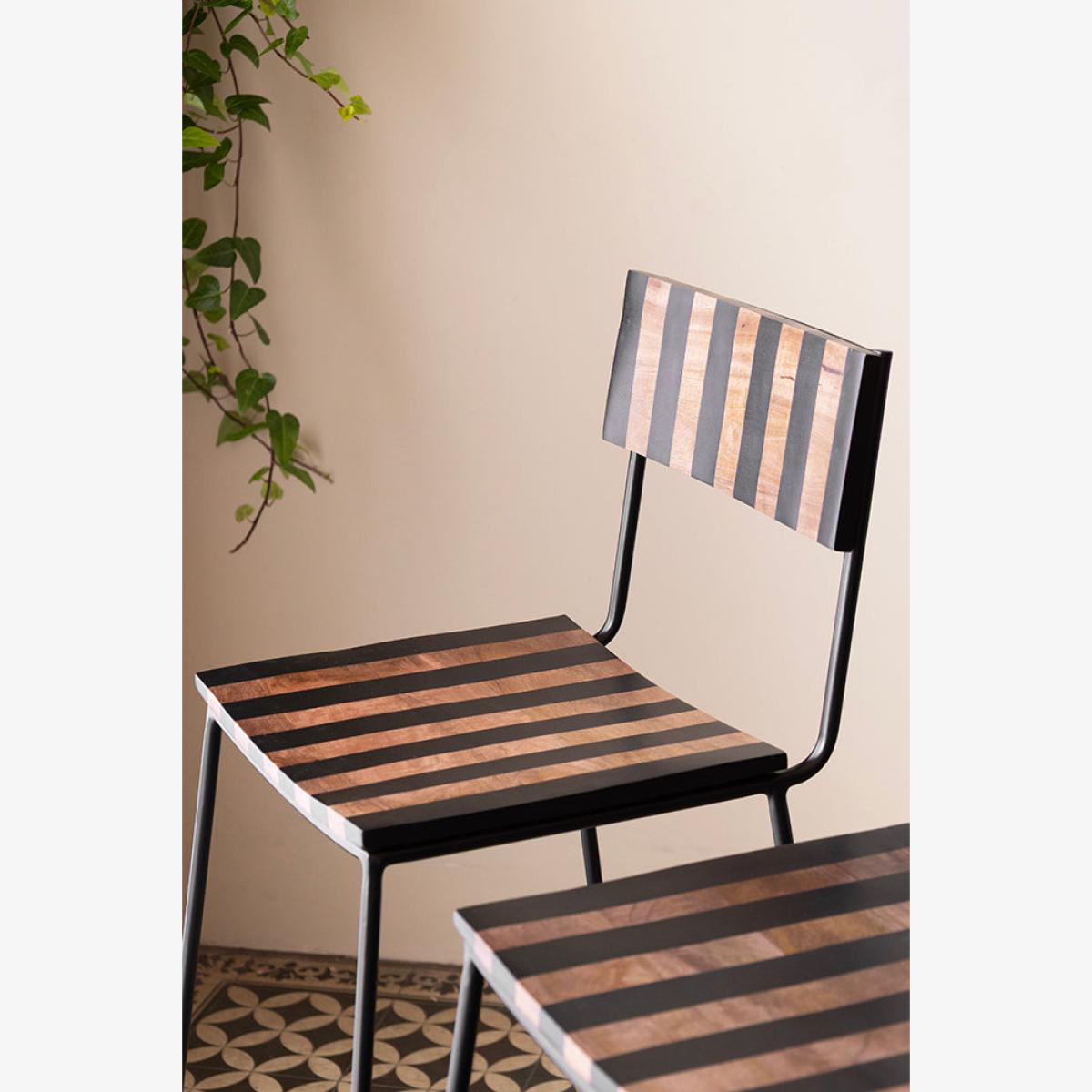 <!--td --> Introducing the Black Stripe Wooden barstool – where rustic charm and sleek sophistication collide! Made from natural and black mango wood, this kitchen barstool's bold striped seat and backrest add instant character. The sturdy black metal legs bring a modern edge, while the rich wood tones keep things inviting and cosy. Whether it’s the centrepiece of a farmhouse kitchen or adding flair to an industrial-chic bar, this modern barstool is all about effortless style. Pull up a seat, pour a drink, and enjoy a perfect blend of rustic warmth and modern cool. - Black Stripe Wooden Bar Stool - Measures: 68cm From Floor To Seat, Total Height: 94cm- Leg Width: 46cm, Leg Depth: 48cm- Seat Width: 36cm, Seat Depth: 30cm - Materials: Mango Wood & Metal