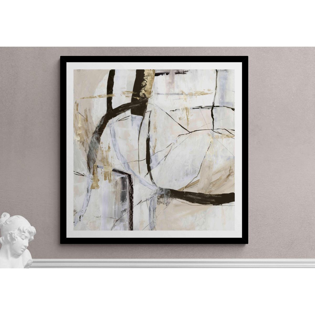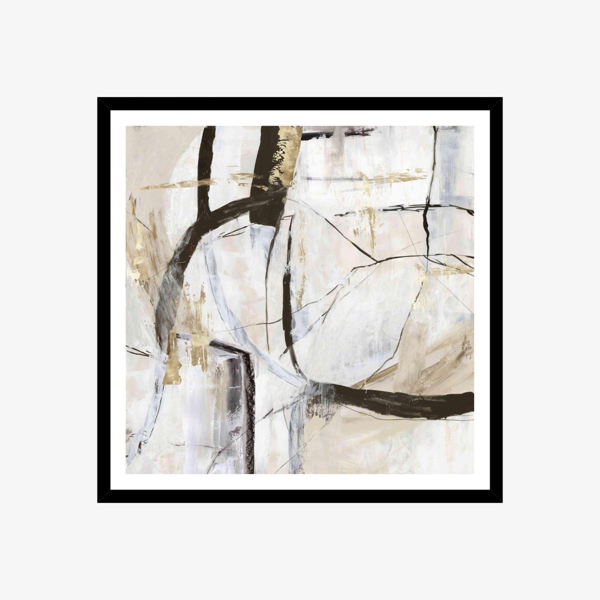 Texture, colour and form come together in this fantastic framed picture that’s hand-finished with gold leaf accents. Abstract in style and large in scale, it’s the perfect piece for a feature wall. Why you'll love it This abstract framed picture is perfect for a feature wall. Largely monochromatic with a black, white and neutral colour palette. Acrylic paint gives a dynamic textured look. Hand-finished with gold leaf. Reproduced from an original artwork by PI Studio. Elegant white border and a black woodgrain-effect frame. Made in England. Online only. This framed picture is part of the Furniture Village home accessories collection. What you need to know Supplied with a metal hanging fitting and nylon cord. Indoor use only. Dimensions Height: 84.5 cm (34 in). Depth: 3.8 cm (2 in). Width: 84.5 cm (34 in).