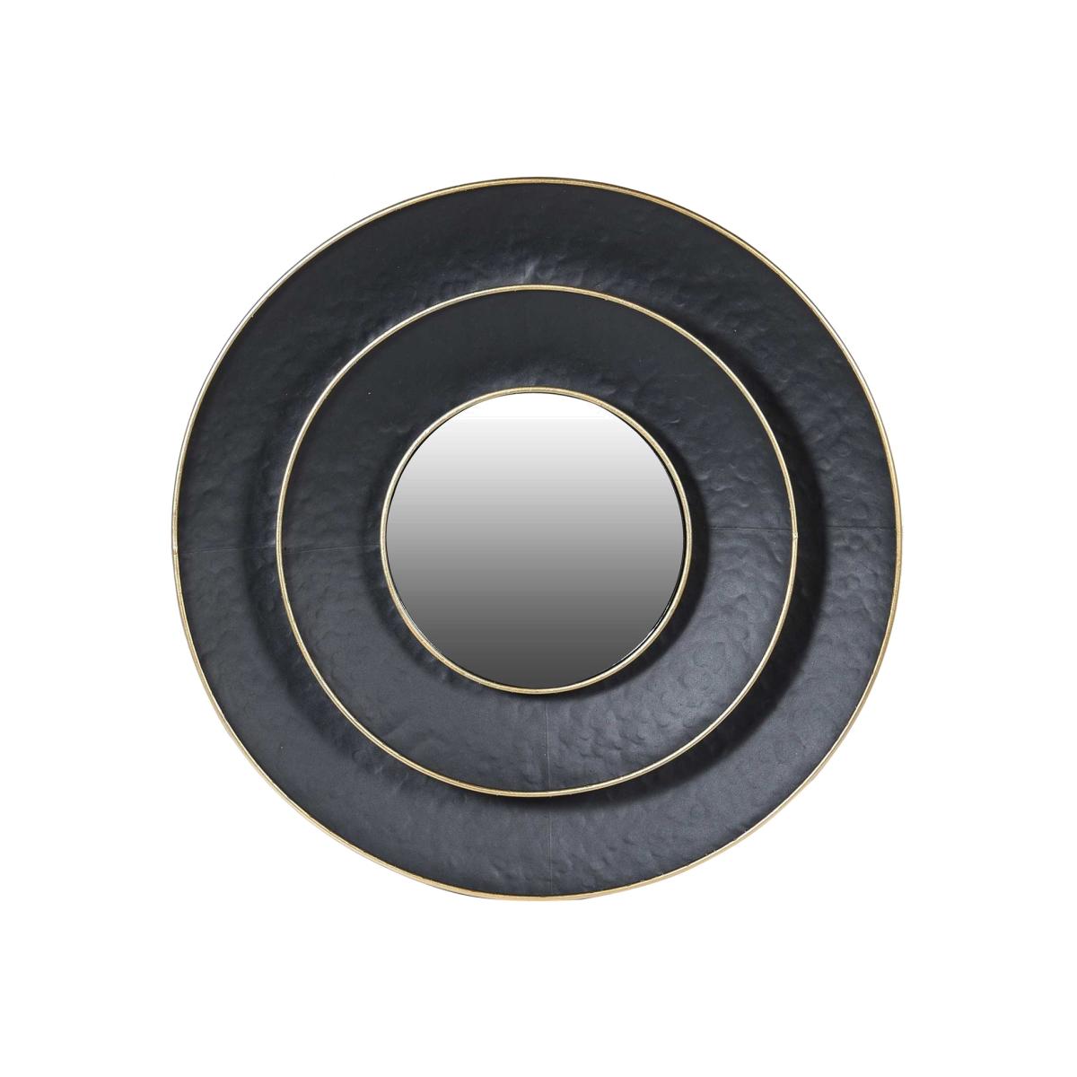 Design. The black tiered mirror is an eye-catching piece, making a bold statement in any modern interior setting. The black engineered wood background surrounded by a slick gold iron finish, creates the perfect contrasting backdrop for the mirrored glass centre. If you are looking to introduce light and style into your hallway or dining room, the black tiered mirror is the ideal accessory.