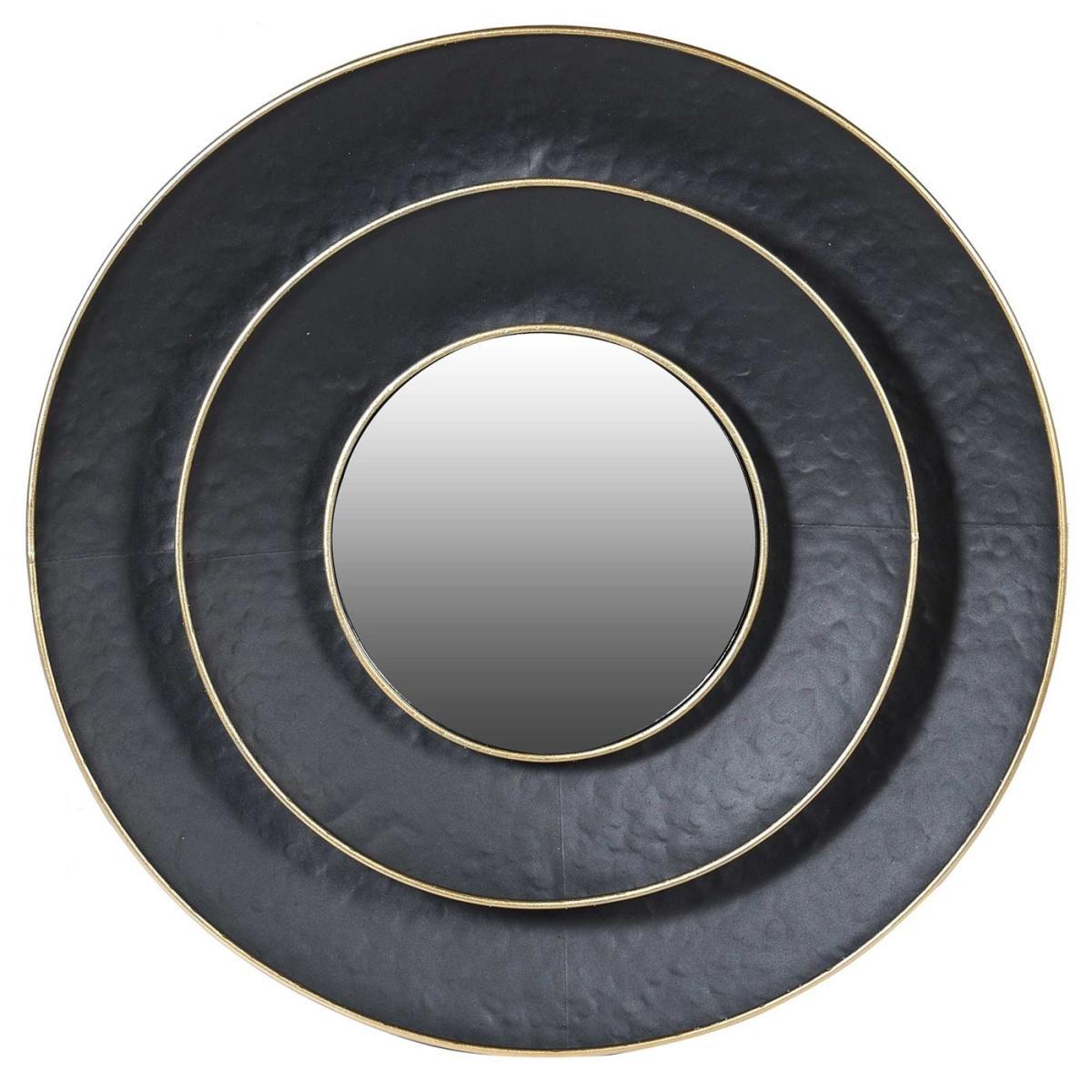 Design. The black tiered mirror is an eye-catching piece, making a bold statement in any modern interior setting. The black engineered wood background surrounded by a slick gold iron finish, creates the perfect contrasting backdrop for the mirrored glass centre. If you are looking to introduce light and style into your hallway or dining room, the black tiered mirror is the ideal accessory.