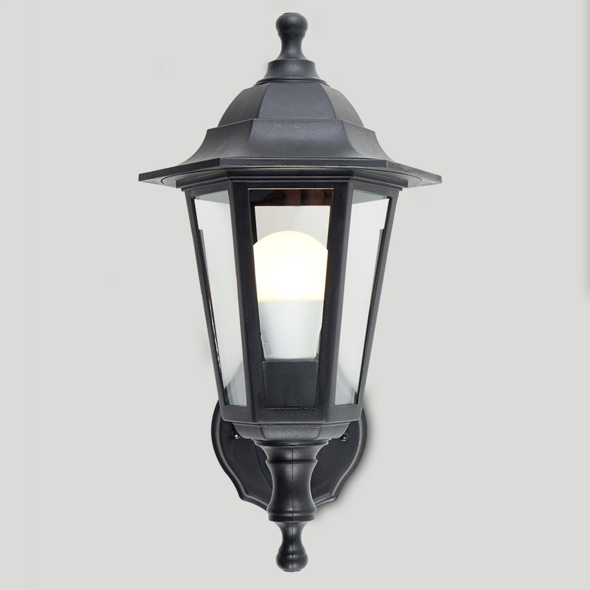 Black Traditional WiredOutdoor Security Lantern Wall Light - Black