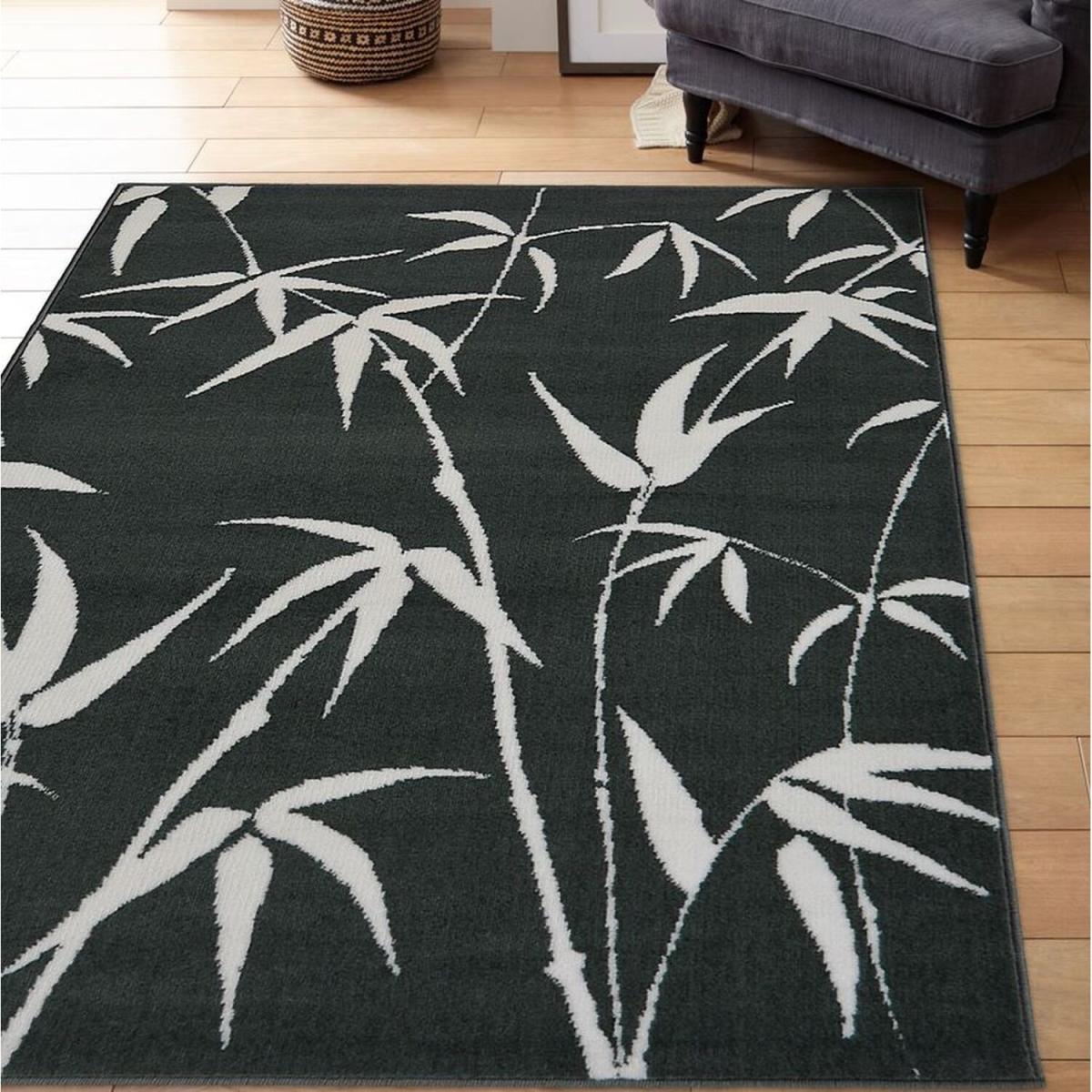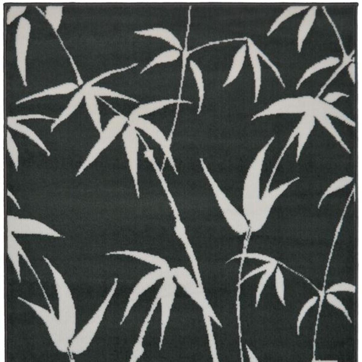Black Tropical Print Living Room Rug - Islay - Black