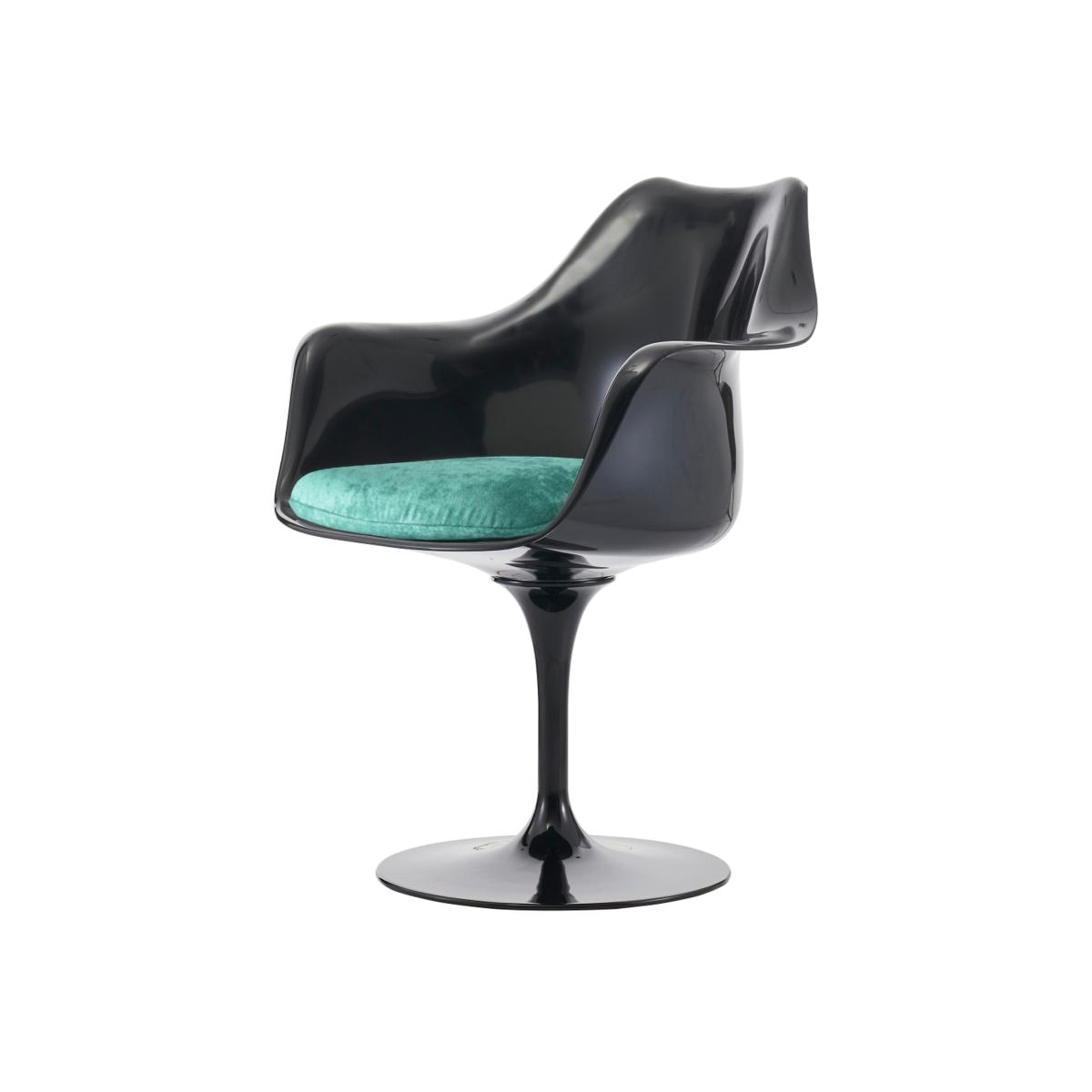 This super sleek Black Tulip Armchair, with its futuristic look, is the ultimate statement piece for your stylish interior. The colour of the cushion cover provides such a super contrast with the black of the chair - but do check out our other seat cushion colours - we love them!The cover is removable and the seat itself is gracefully supported by a single stem, connected to the base of heavy duty aluminium, which incorporates a smooth swivel mechanism for all around movement - great for home, office or commercial use. with the luxurious soft polyesterfabric of the seat cushion, this stylish and high quality Tulip chair would be perfect in any contemporary interior. This armchair is a real conversation piece and will work well on its own in your living area or within a set of matched chairs together with the Tulip Dining Table.
