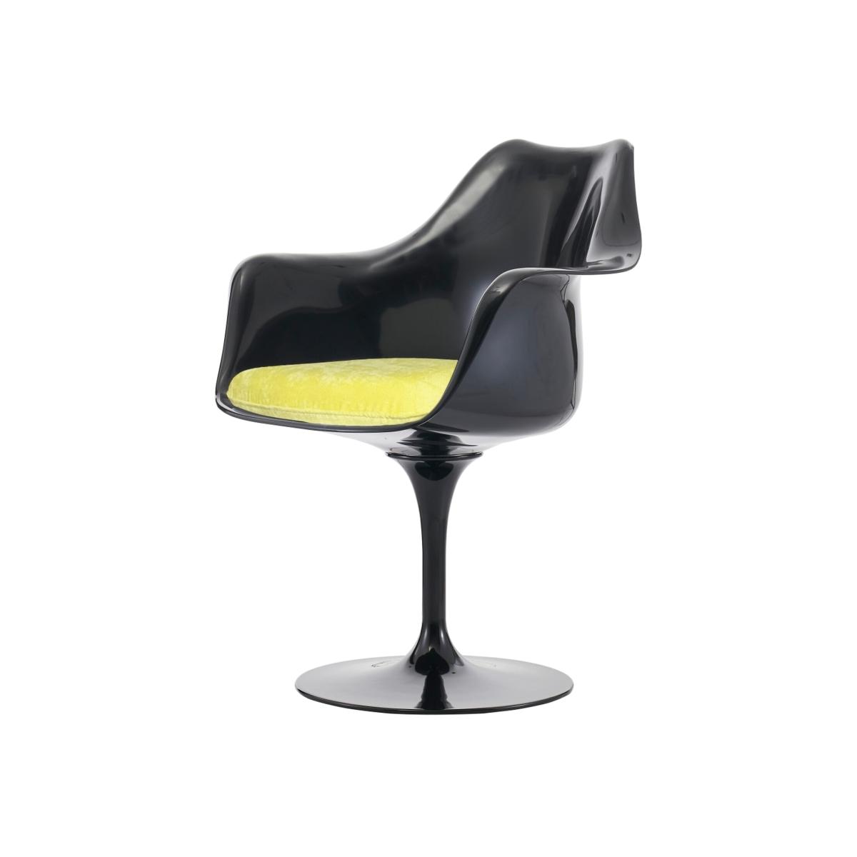 This super sleek Black Tulip Armchair, with its futuristic look, is the ultimate statement piece for your stylish interior. The colour of the cushion cover provides such a super contrast with the black of the chair - but do check out our other seat cushion colours - we love them!The cover is removable and the seat itself is gracefully supported by a single stem, connected to the base of heavy duty aluminium, which incorporates a smooth swivel mechanism for all around movement - great for home, office or commercial use. with the luxurious soft polyesterfabric of the seat cushion, this stylish and high quality Tulip chair would be perfect in any contemporary interior. This armchair is a real conversation piece and will work well on its own in your living area or within a set of matched chairs together with the Tulip Dining Table.