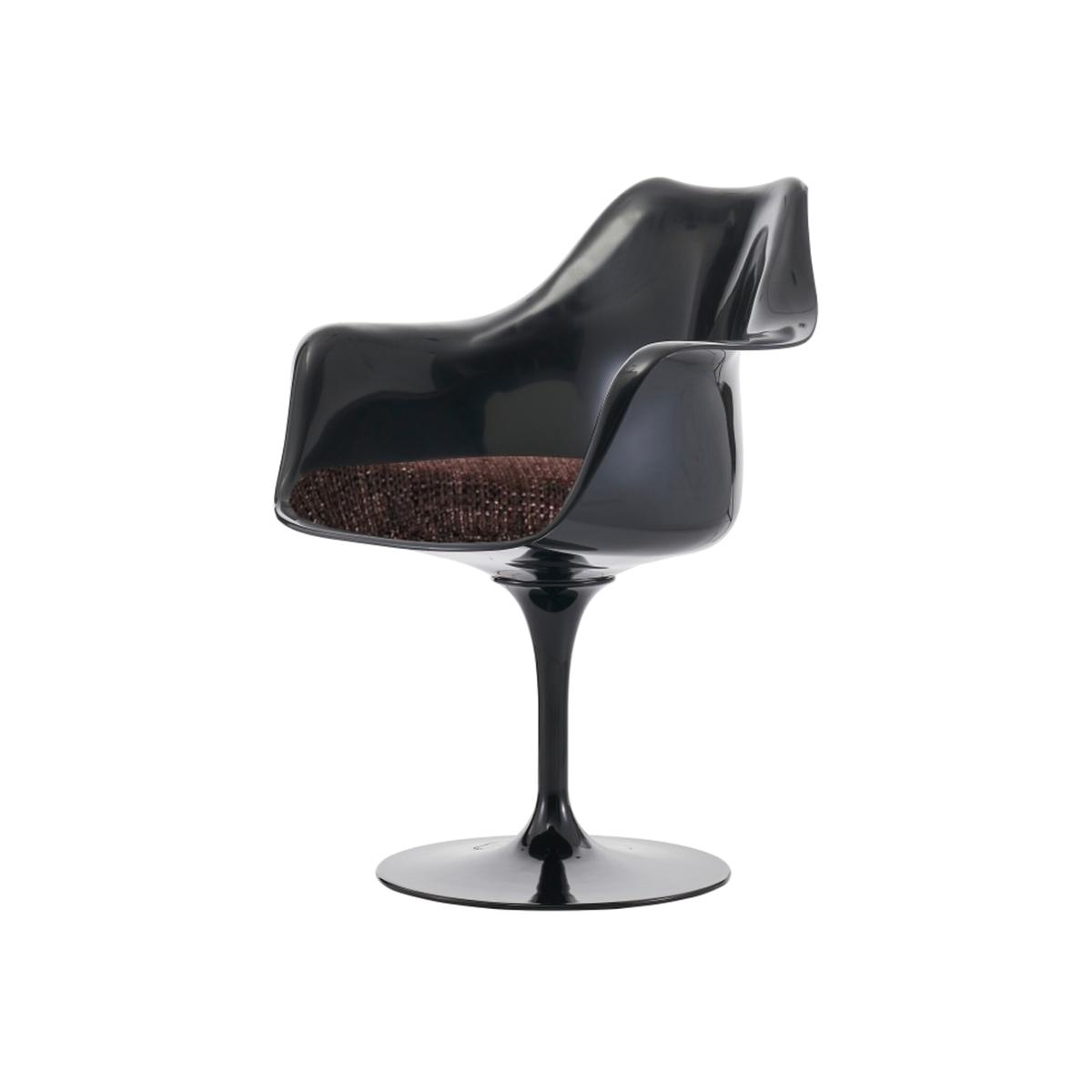 This super sleek limited edition Black And Textured Cushion Tulip Armchair is a perfect way to make a statement in a commercial or home design setting. The single stem Tulip chair is so elegant in its looks and is connected to a fully swivelling aluminium base for easy of use. The Tulip design in the limited edition gloss black is a real conversation piece, and would work well both on its own and as a set of chairs with a matching Tulip table! The textured cushion option adds depth to the design and really contrasts with the smooth and sleek gloss black chair, available in a variety of colours to suit all your interior needs. Don't forget to checkout the rest of our Tulip chair options with a range of colours and finishes - we know you'll love them just as much as we do!