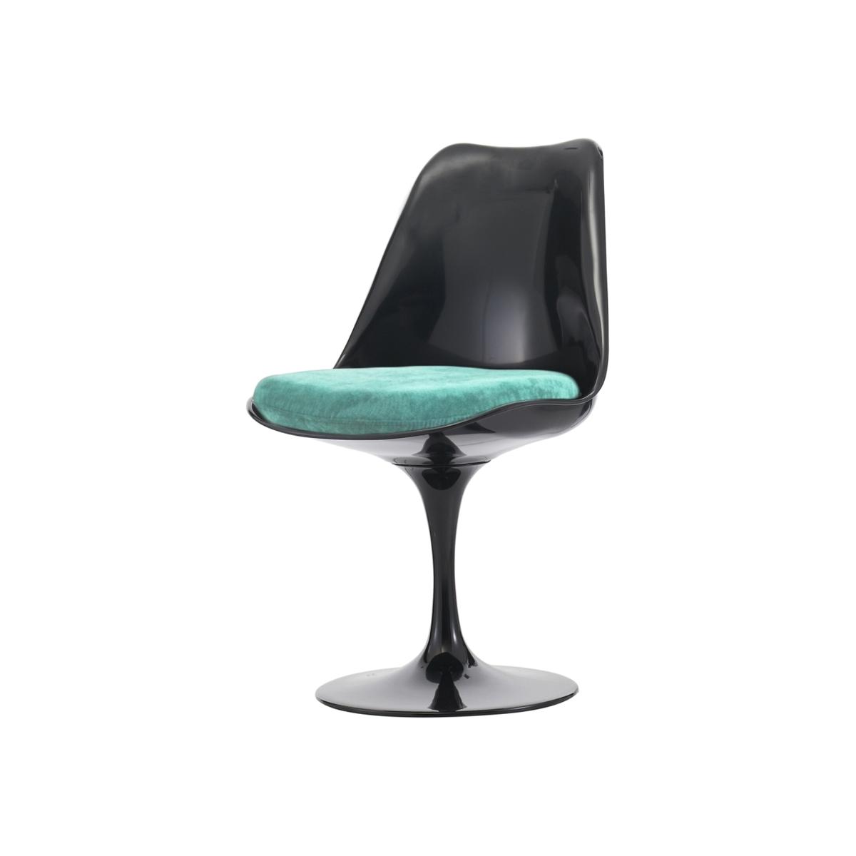This super sleek, Luxurious Tulip Side Chair, with its futuristic look, is the ultimate statement piece for your stylish interior. The contrast between the coloured cushion and black is fabulous but do check out our other seat cushion colours as well - we love them!This stylish and high quality Tulip chair would be perfect in any contemporary interior. This side chair is a real conversation piece and will work well on its own or within a set of matched chairs together with the Tulip Dining Table. The cushion cover is removable and the seat itself is gracefully supported by a single stem, connected to the base of heavy duty aluminium which incorporates a smooth swivel mechanism for all around movement - great for home, office or commercial use.