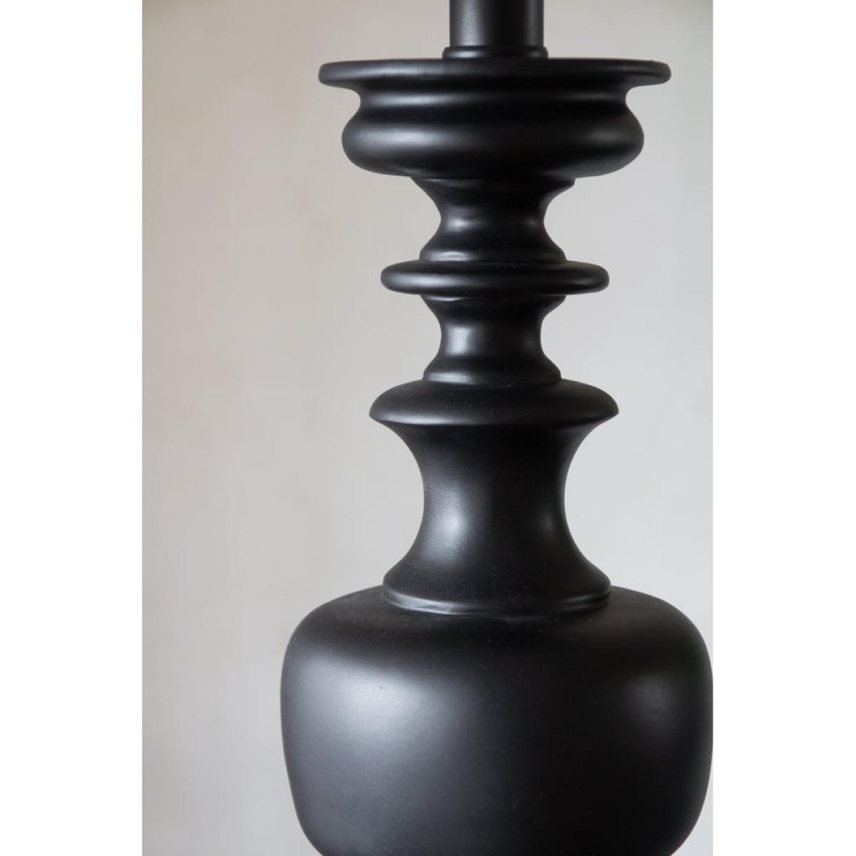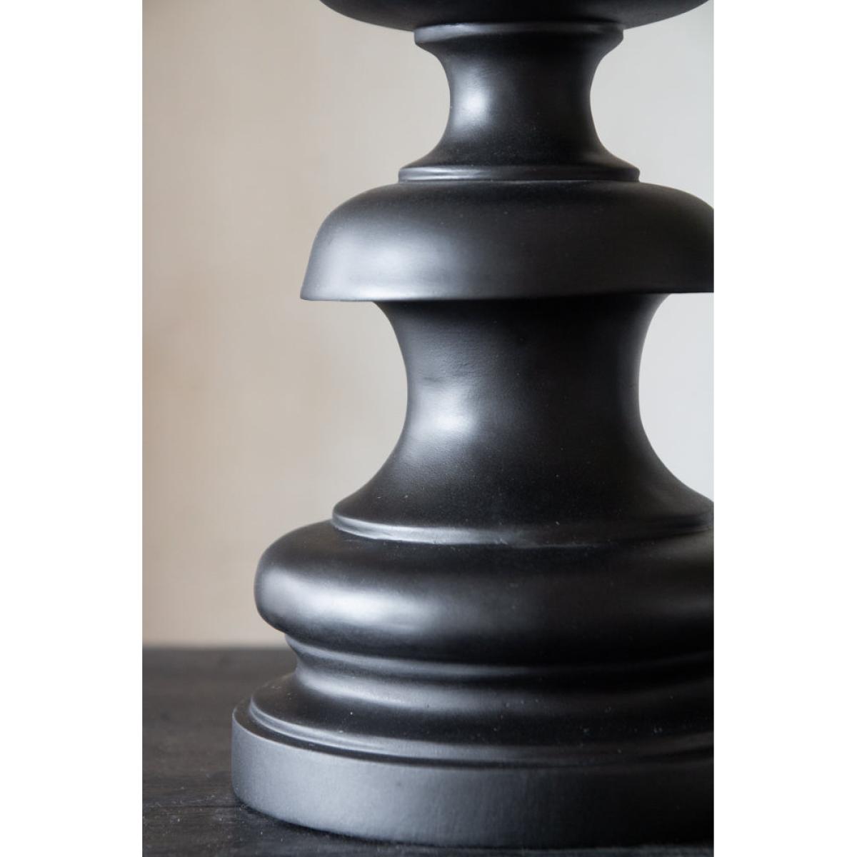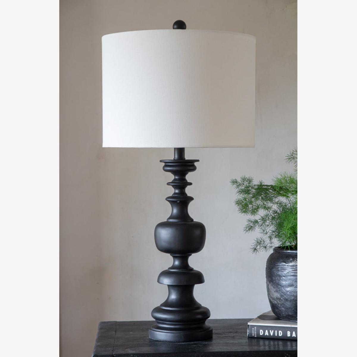 About The Black Turned Wood Table Lamp With Linen Lamp Shade A serenely stylish must-have addition for any corner of your home, the Black Turned Wood Table Lamp With Linen Lamp Shade will provide any space with that much needed mood lighting. This quirky fabulous Black and White Table Lamp offers wonderful shape and a beautiful texture to any interior scheme with its plush shade and turned towering design, it promises to create the wow factor wherever it is placed. The Black Turned Wood Table Lamp measures 74cm in height, with a diameter of 35cm. The shade measures 25cm in height, with a diameter of 35cm. Why We Think You’ll Love The Black Lamp With Linen Lamp Shade This Retro meets Modern Table Lamp encapsulates a hint of nostalgia with a nod to traditional wood turned design whilst also showcasing a dazzling contemporary style with its glorious monochrome colour palette. A Side Table Lamp that will bring delight to any surface, this ultra charming accessory mixes functionality with effortless glamour, illuminating any room and bringing a chic ornamental feature to the space all in one. Where To Style The Wooden Table Lamp Make a stunning statement in your sleeping space and use a pair of these lovely lights as Bedside Table Lamps for a striking design that will stand out from the rest. Why not display this Black Table Lamp in your living area on a console table amongst additional decorative treasures in neutral shades to create a calming yet playful corner that screams timeless elegance.