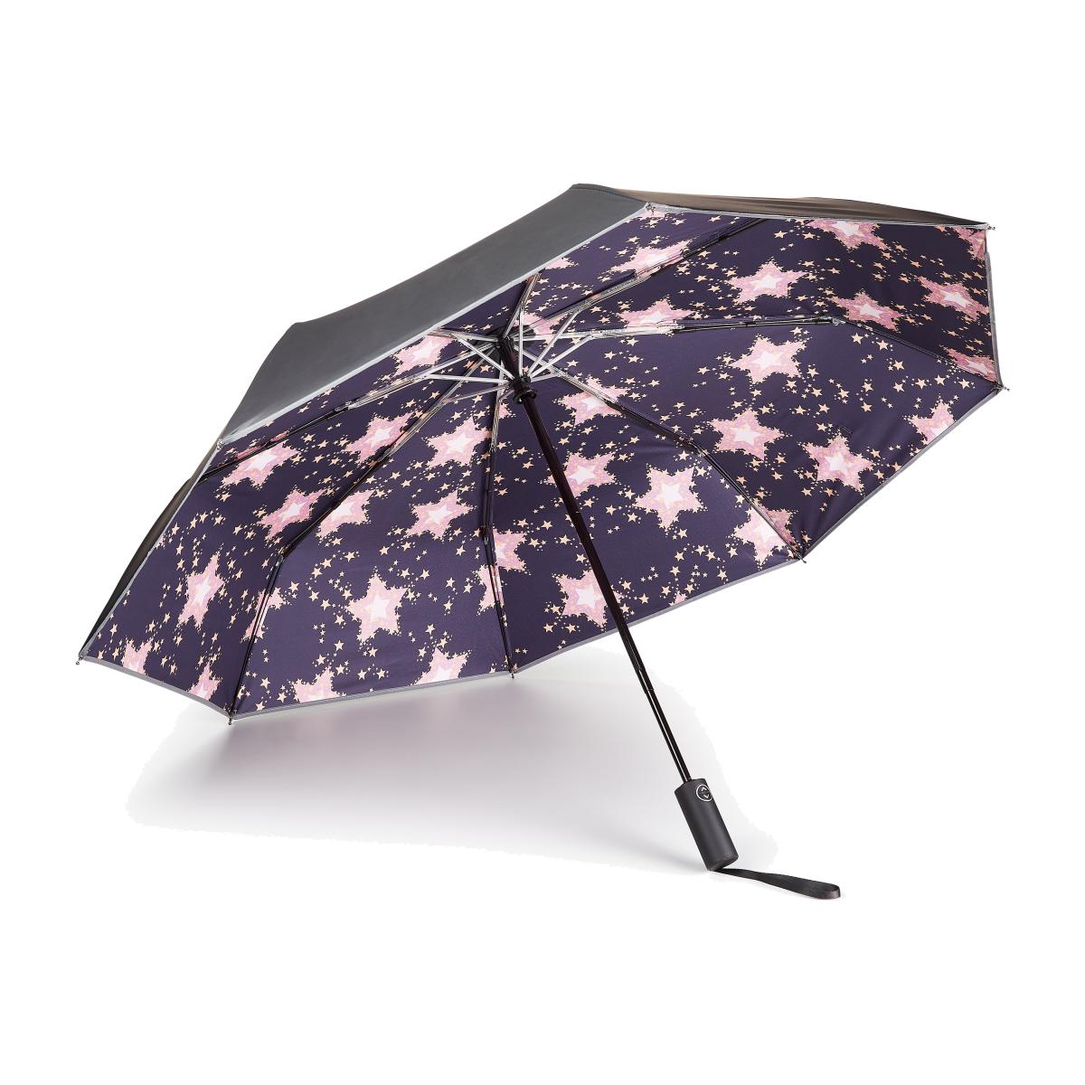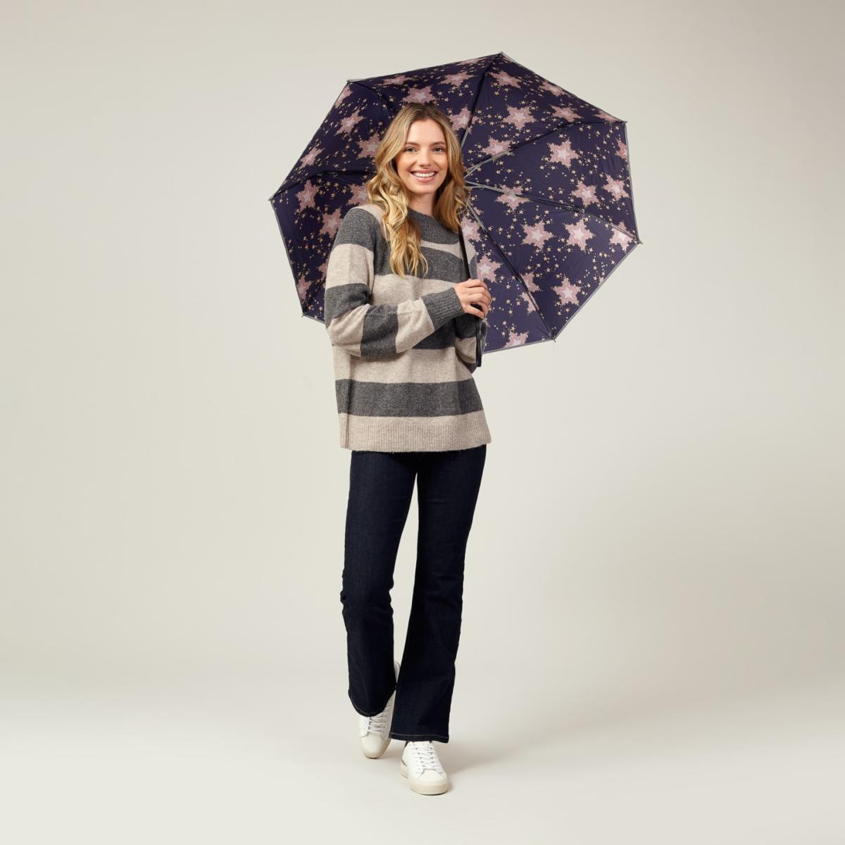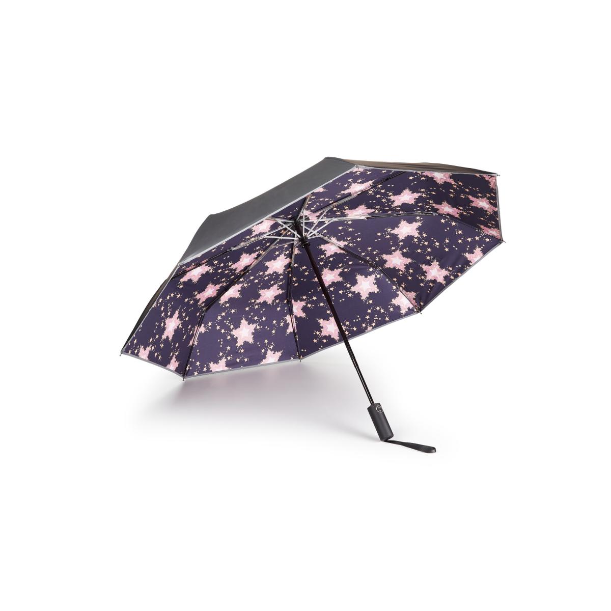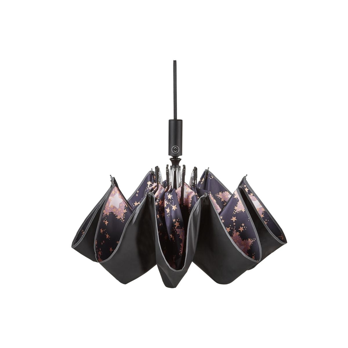 I love the starry night print on this umbrella - it adds a touch of whimsy while remaining versatile. It works well in eclectic or modern interiors, especially when paired with other celestial or darker colour palettes. Practical styling tips include using it as a statement corner piece in a hallway or entryway, or as a playful accessory in a client’s outdoor patio during rainy days. Its celestial design not only makes it a functional item but also a conversation starter, so consider placing it where it can be easily seen, like hung on a wall with other decorative umbrellas or displayed open in a display setting.