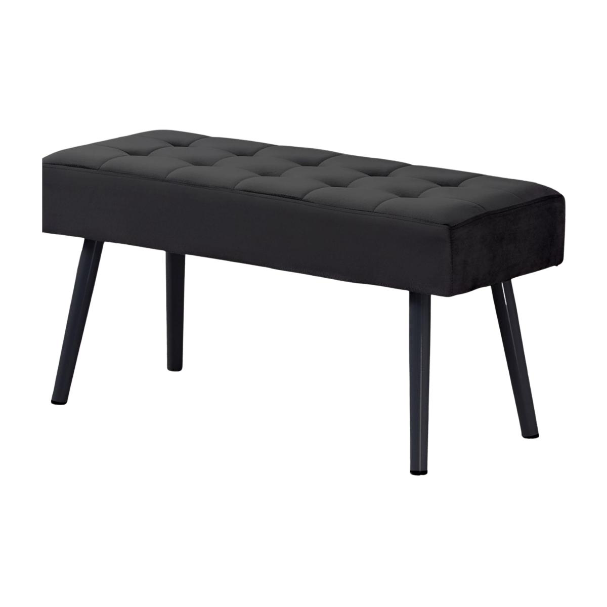 The chic black velvet dining bench includes a soft black velvet padded seat with stylish stitching and tufting. Perfect for extra seating around the table or as a stylish accent piece in your home The padded seat features elegant stitching and tufted details, giving it a modern yet cosy look. Add a touch of comfort and style to your dining area with this chic black velvet dining bench With sturdy metal legs, this bench is built to last and blends easily with any decor Size: 90cm (L) X 36cm (W) x 47cm (H) Straightforward assembly is supported by clear instructions for our bench. Ideal for dining areas or as a versatile accent bench FEATURES:Dining Bench soft black velvet padded seat. Stylish stitching and tufting. Modern yet cosy look. Perfect for extra seating around the table. Versatile as a stylish accent piece. Sturdy metal legs for durability. Blends easily with any decor. Ideal for dining areas or as an accent bench. Size: 90cm (L) X 36cm (W) X 47cm (H). Straightforward assembly with clear instructions.